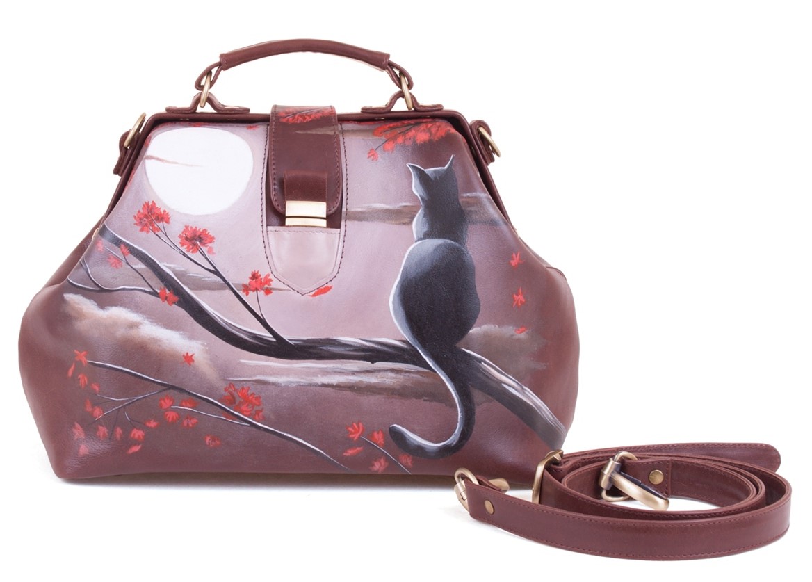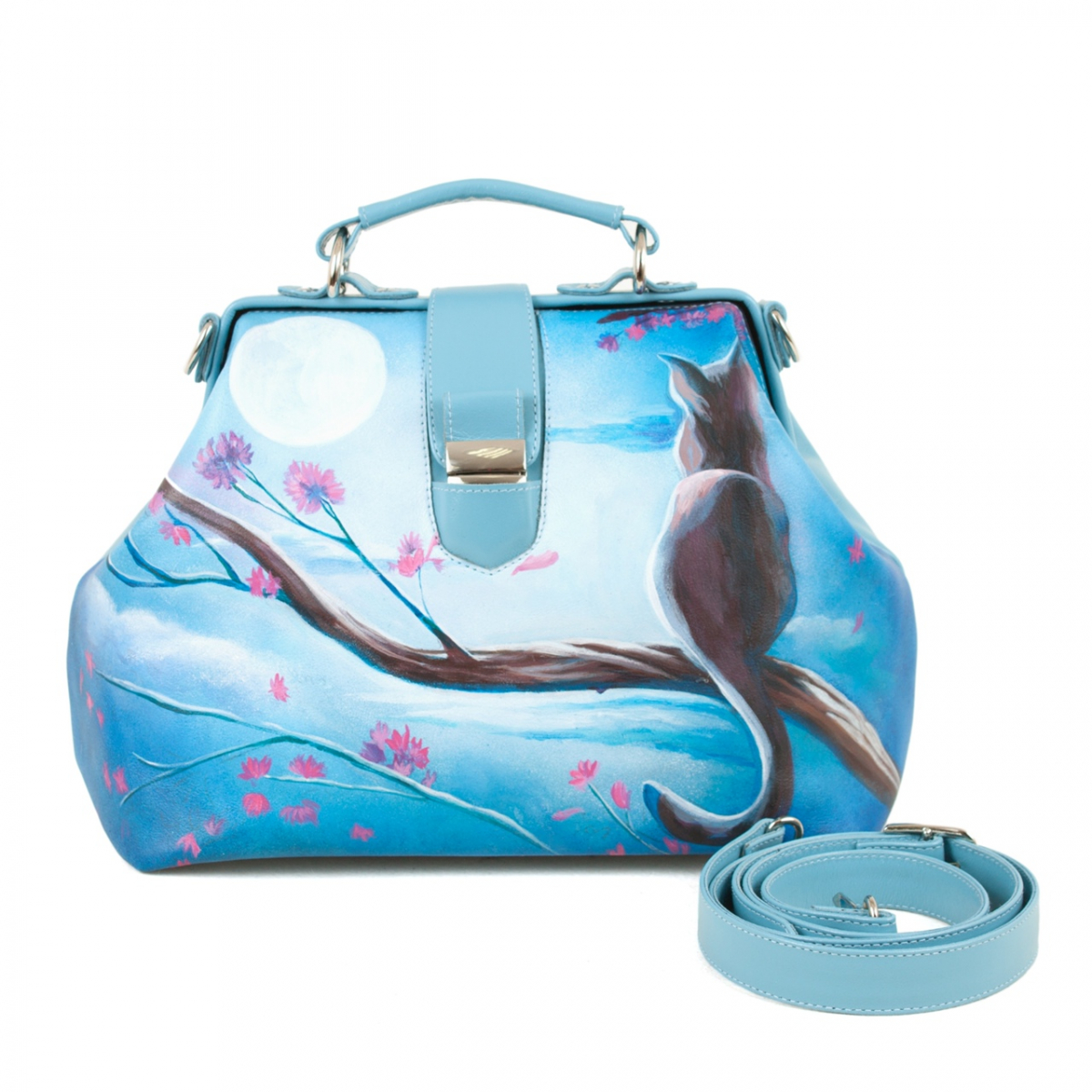 Женская сумка формы саквояж "Лунная кошка" ручной работы на заказ | Купить в Sumnizza