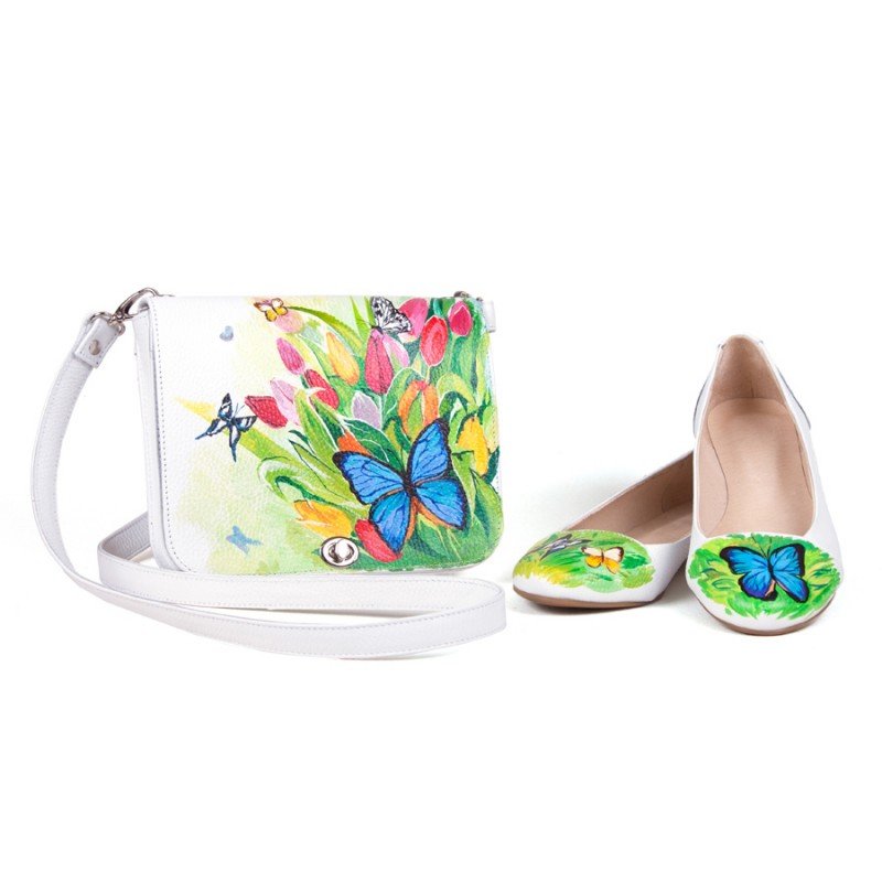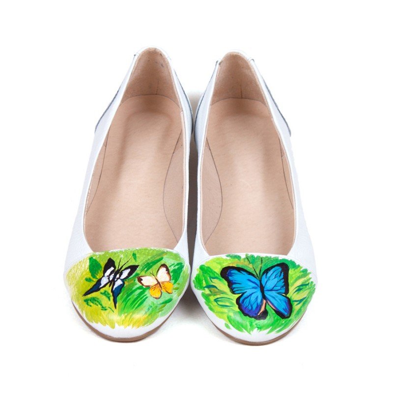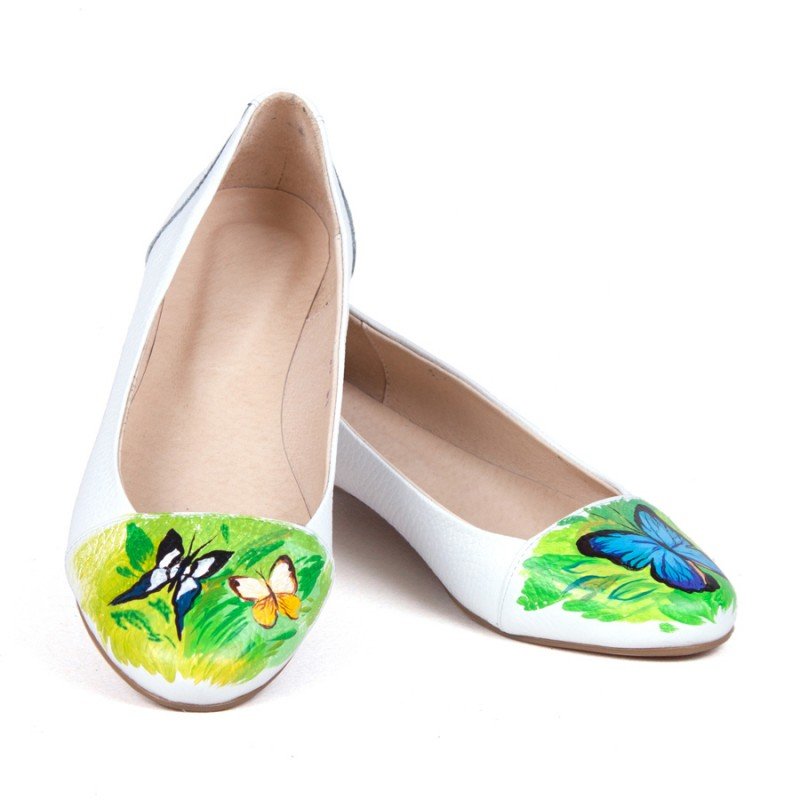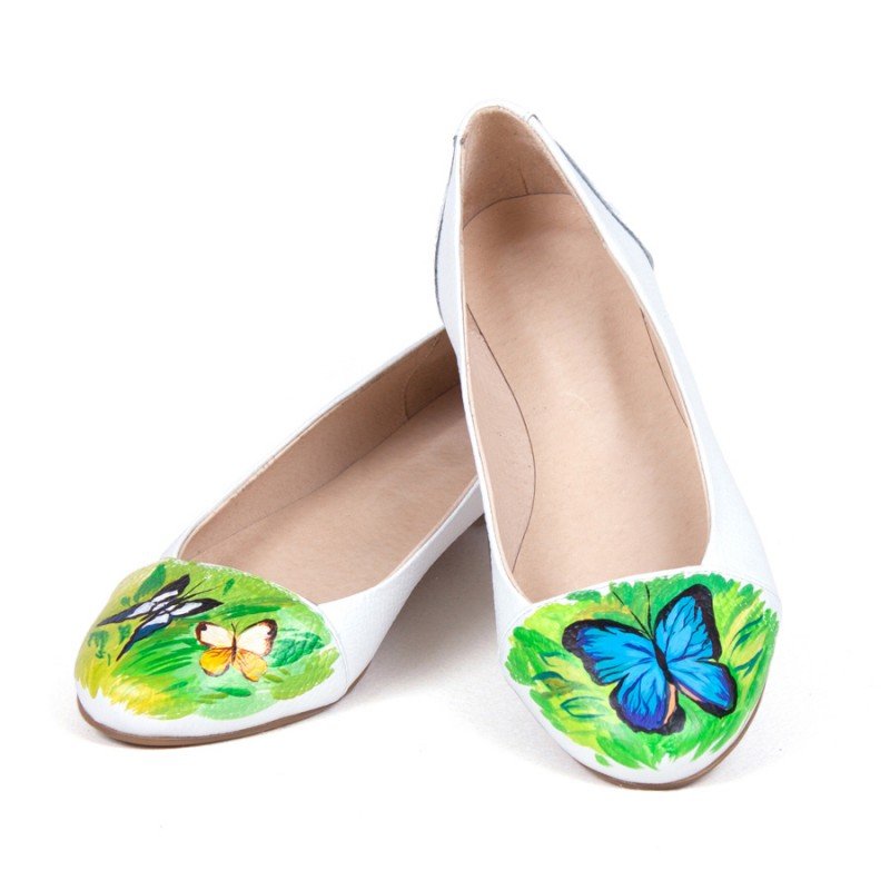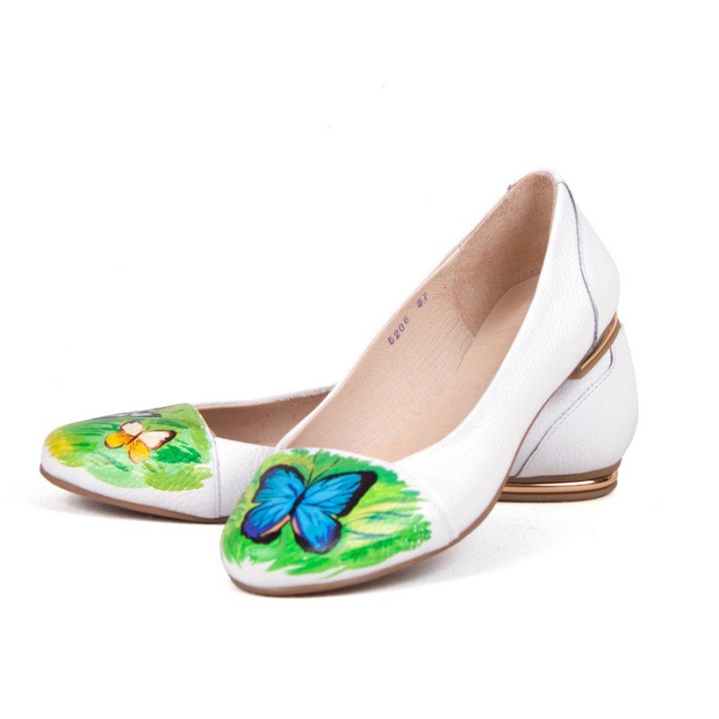 Женские модные балетки "Бабочки" - купить женские кожаные балетки с рисунком ручной работы - онлайн в Sumnizza