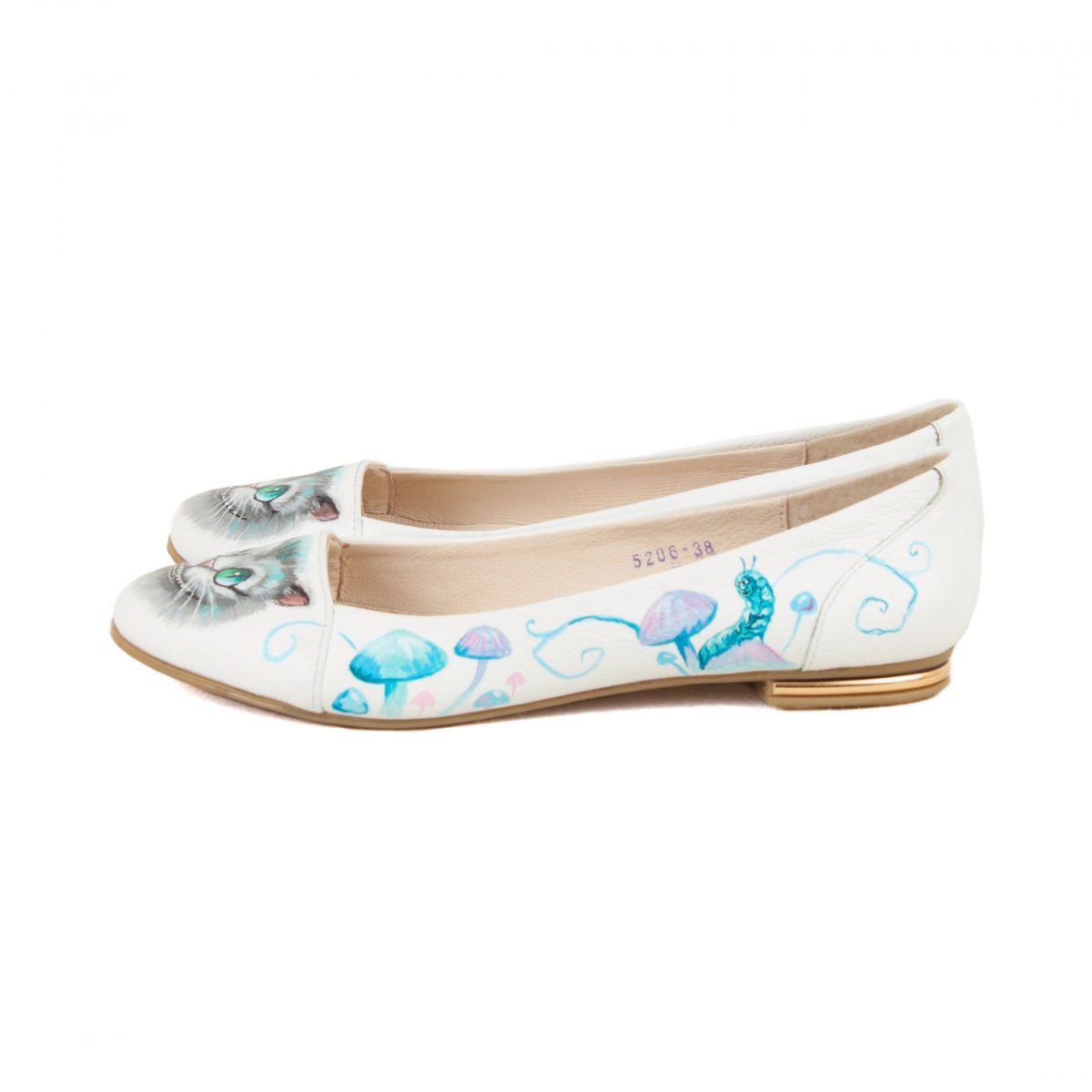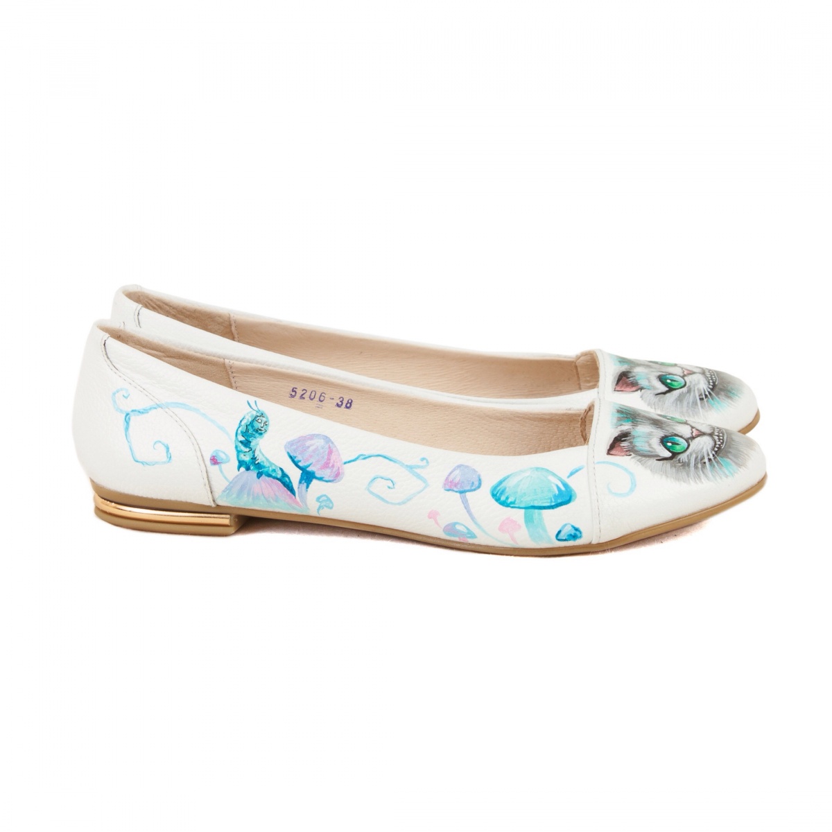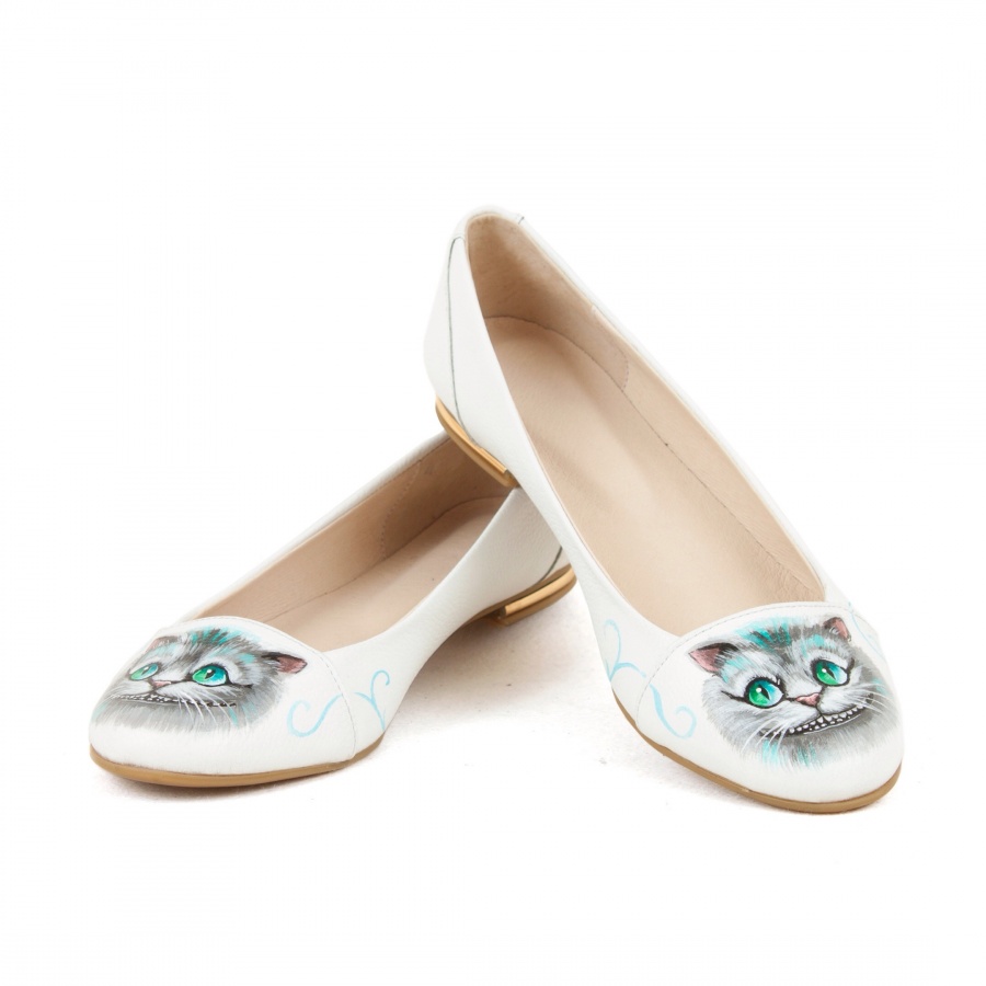 Балетки под платье "Чеширский кот" - купить женские кожаные балетки с рисунком ручной работы - онлайн в Sumnizza