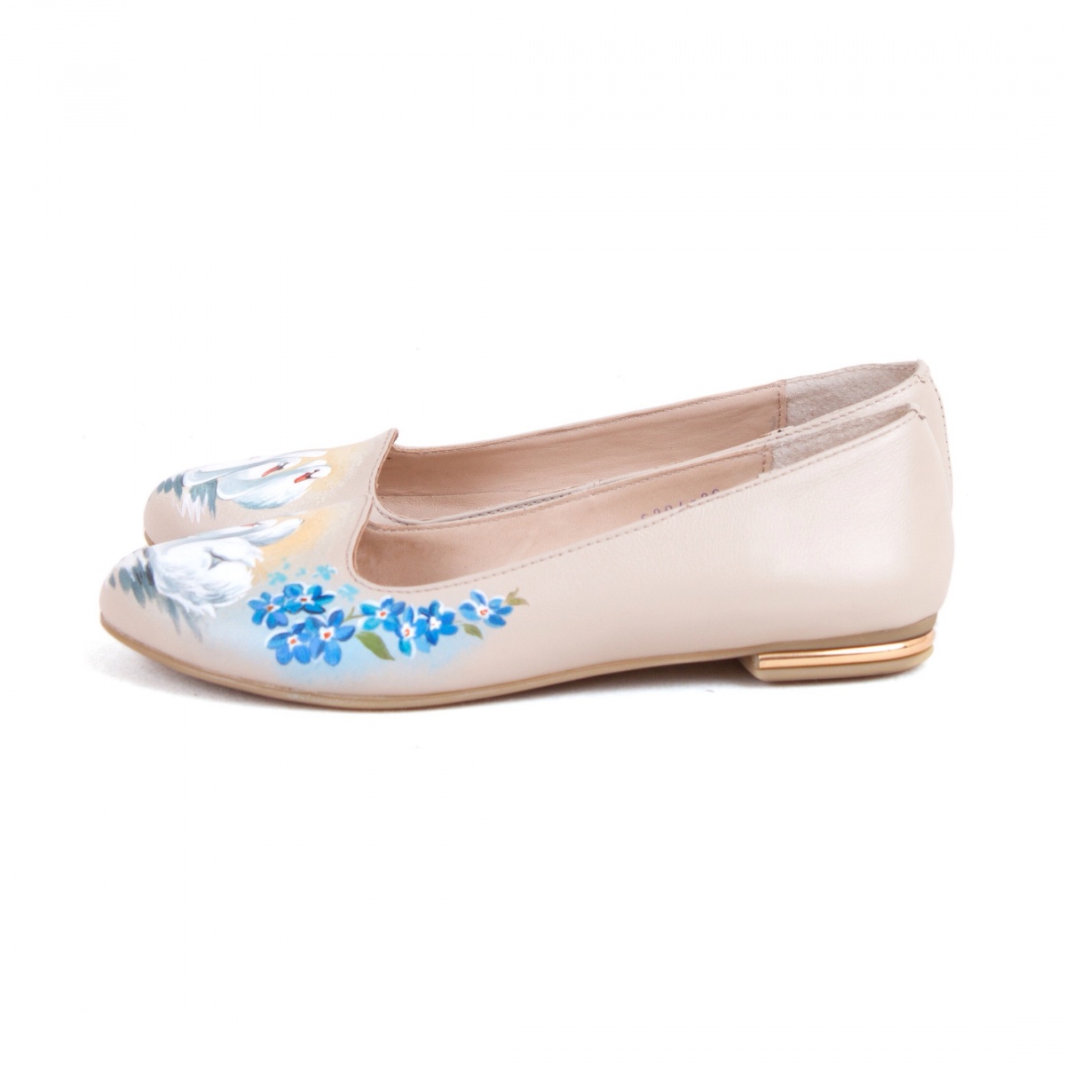 Балетки с рисунком "Лебеди" - купить женские кожаные балетки с рисунком ручной работы - онлайн в Sumnizza