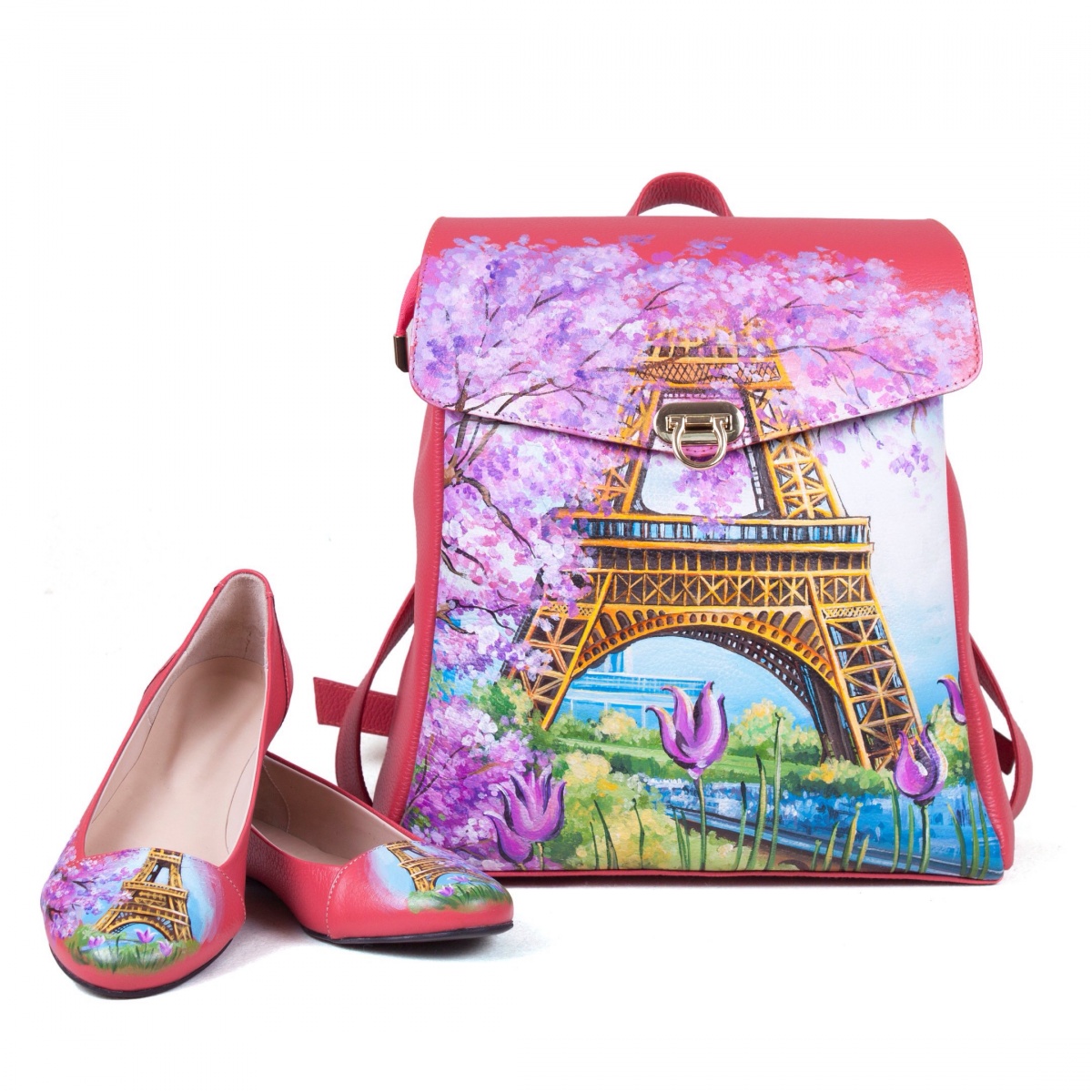 Женские туфли-балетки "Цветущий Париж" - купить женские кожаные балетки с рисунком ручной работы - онлайн в Sumnizza