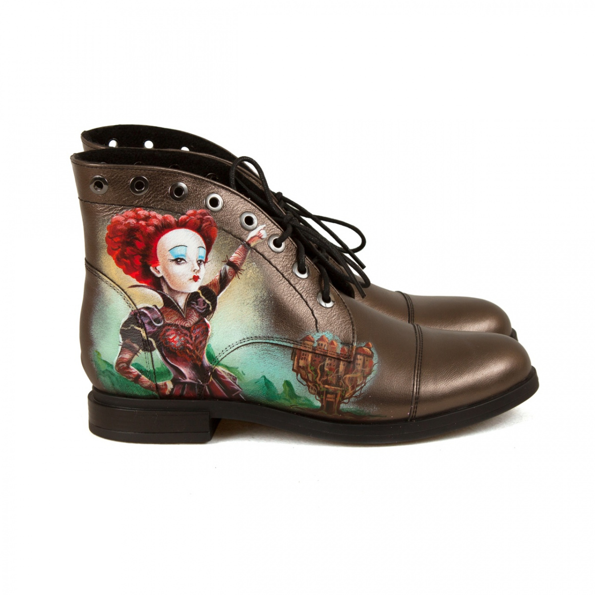 Мы создадим кожаные женские ботинки специально для вас. Ваша роспись ручной работы сделает их единственными и неповторимыми.