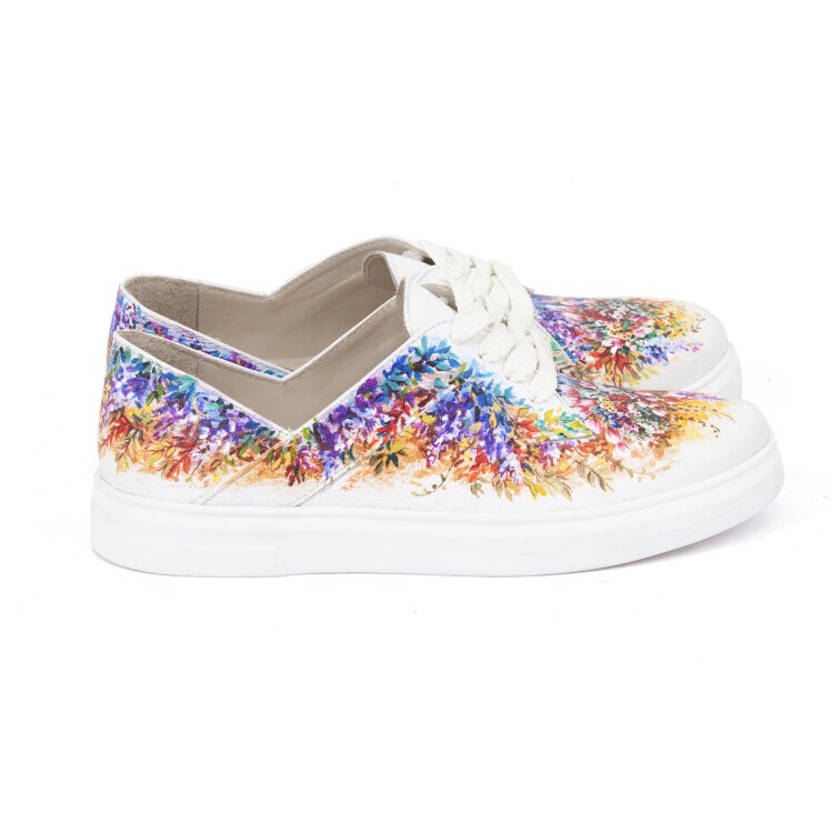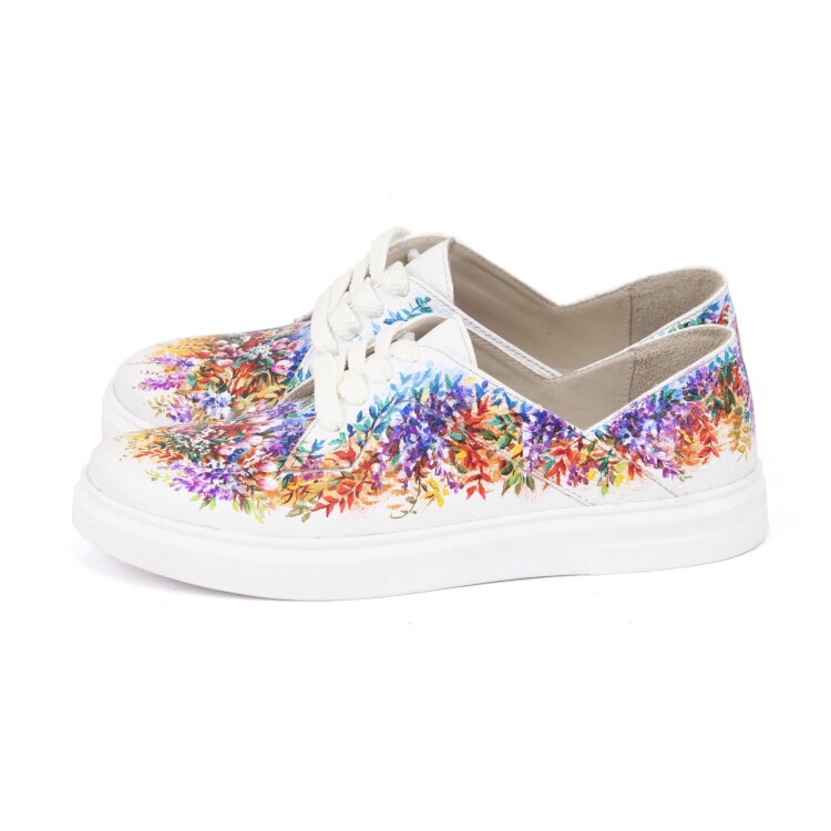 • Стильный рисунок — профессиональные художники расписывают кожаные женские кеды акриловыми красками, как холст. Каждая роспись уникальна.