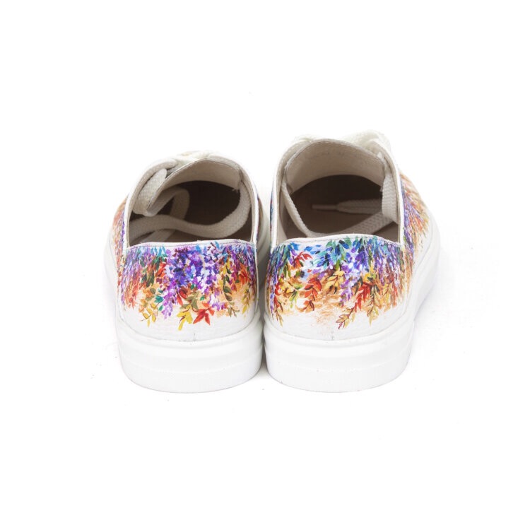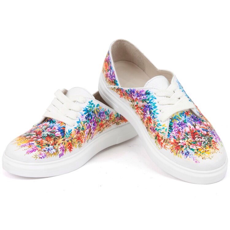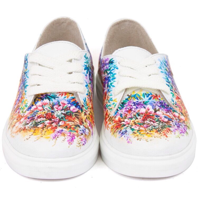 Купить Белые кеды из кожи "Луговые цветы" женские кожаные кеды и слипоны с рисунком ручной работы - он-лайн в Sumnizza