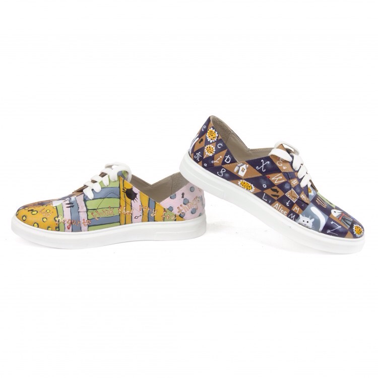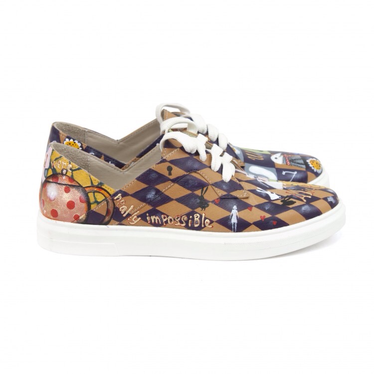 Купить Обувь кеды "Алиса в стране чудес" женские кожаные кеды и слипоны с рисунком ручной работы - он-лайн в Sumnizza