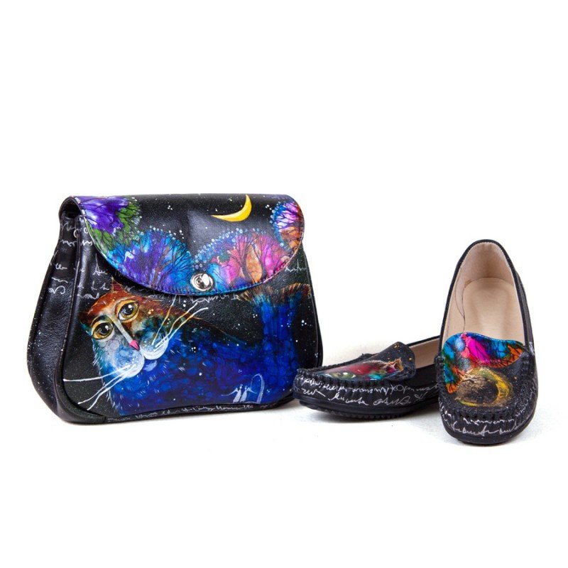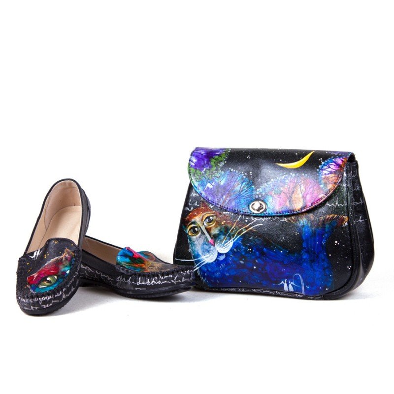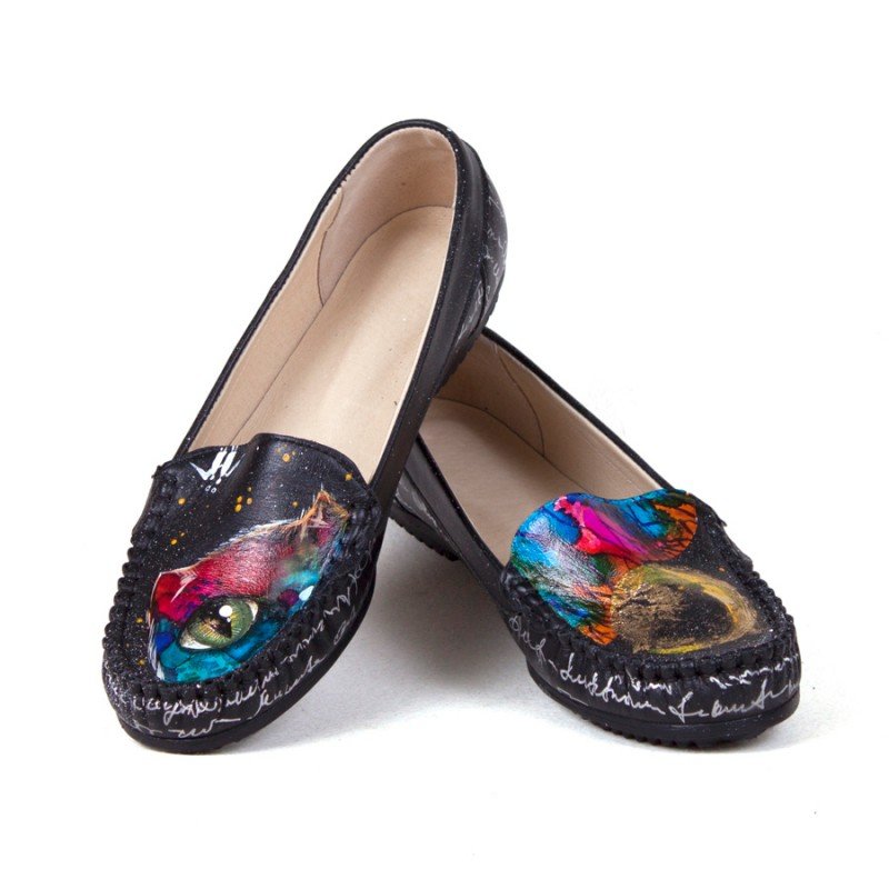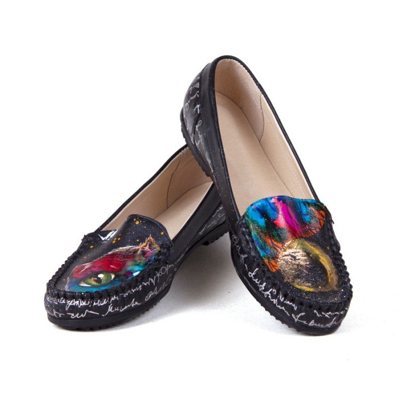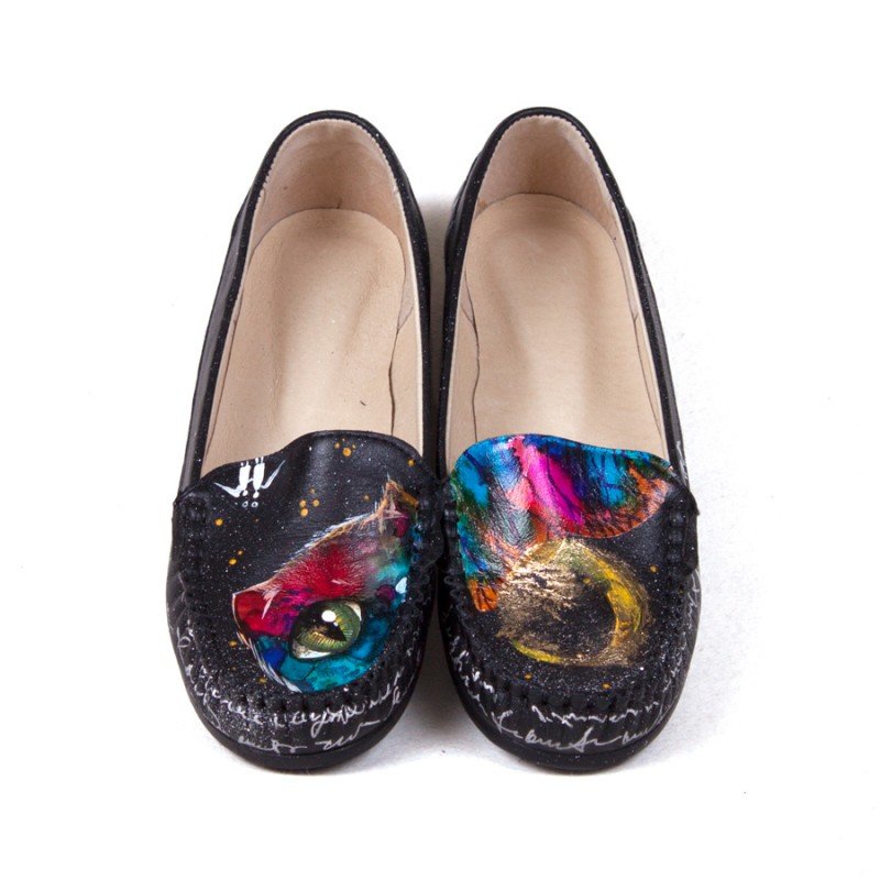 Мокасины "Этно Кот" - купить женские кожаные и замшевые мокасины с рисунком ручной работы - он-лайн в Sumnizza