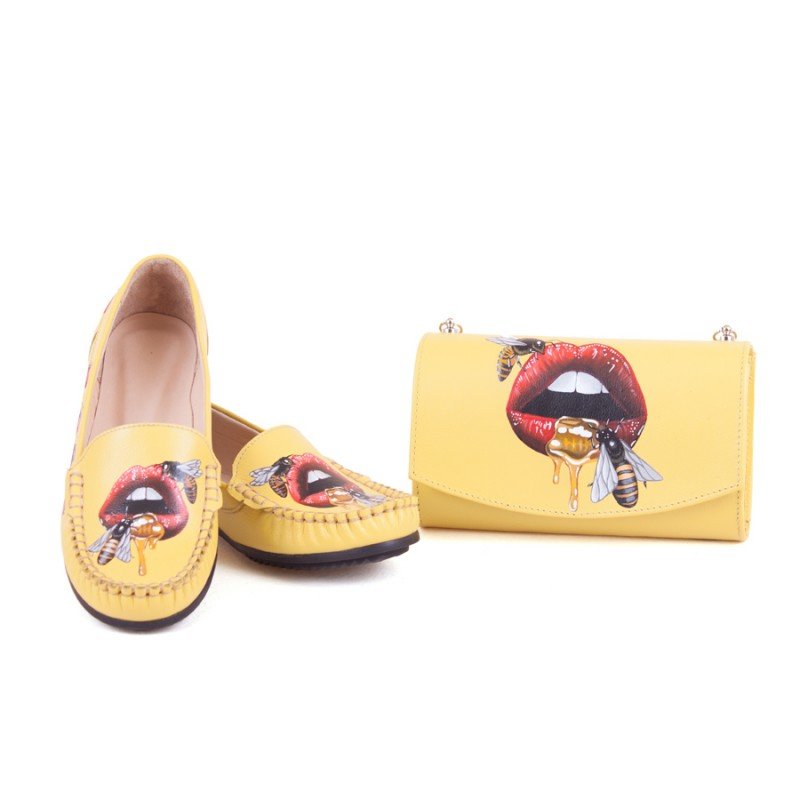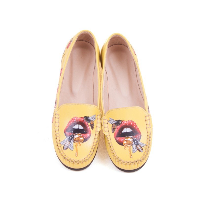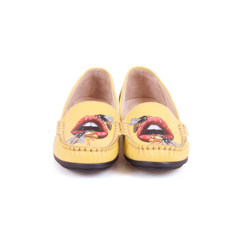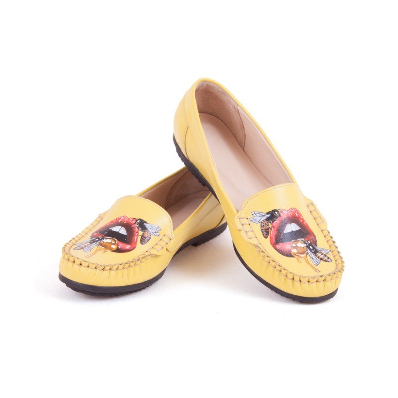 Яркие мокасины с рисунком "Мед по губам" - кожаные и замшевые мокасины ручной работы с рисунком на заказ | Sumnizza