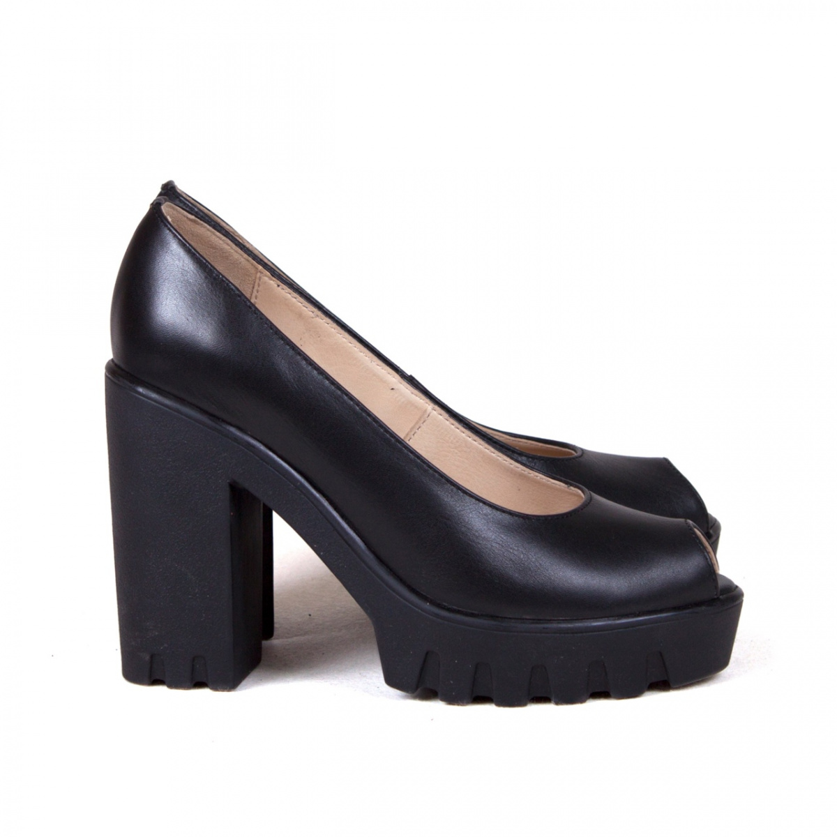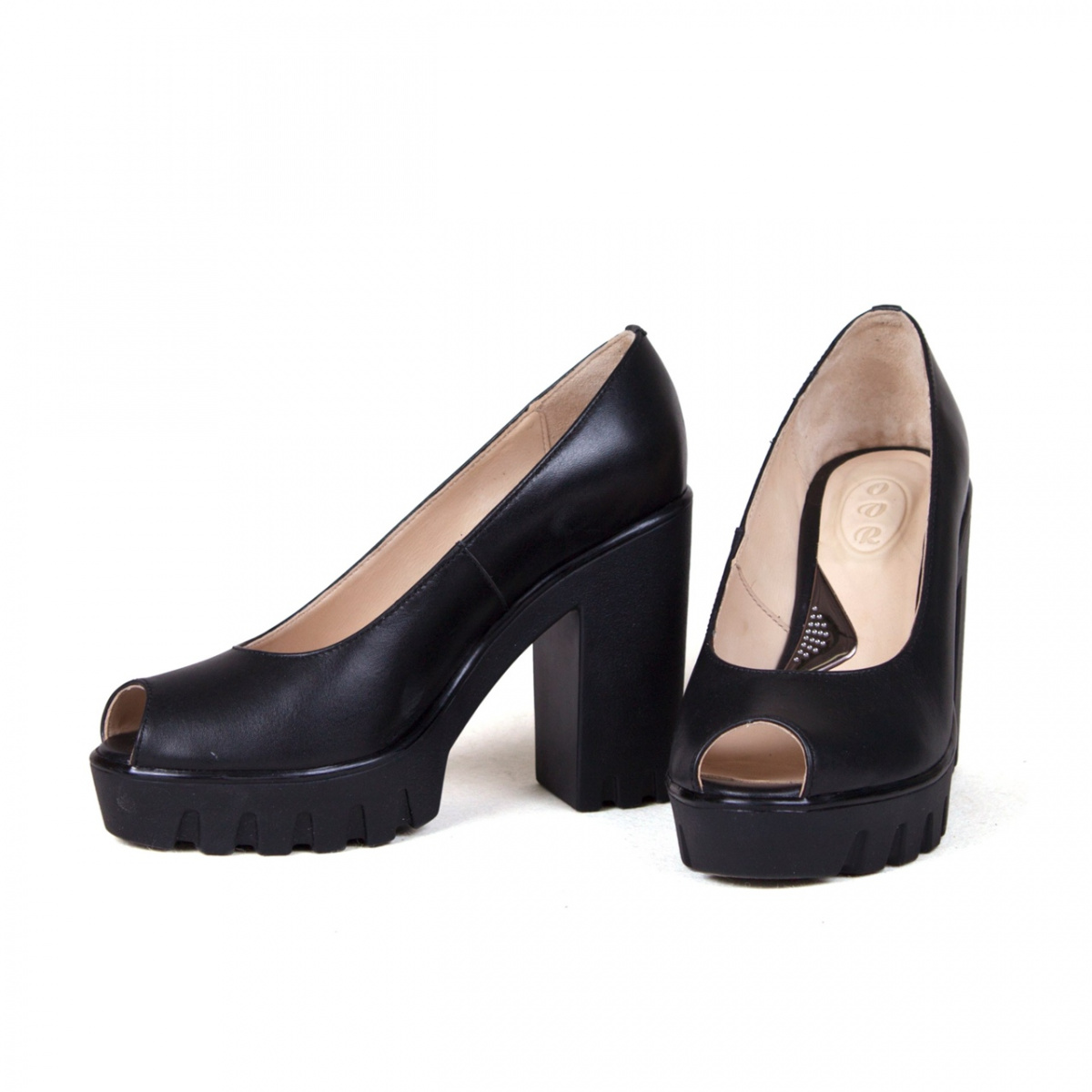 Купить кожаные черные туфли с открытым мыском "ночь" на заказ