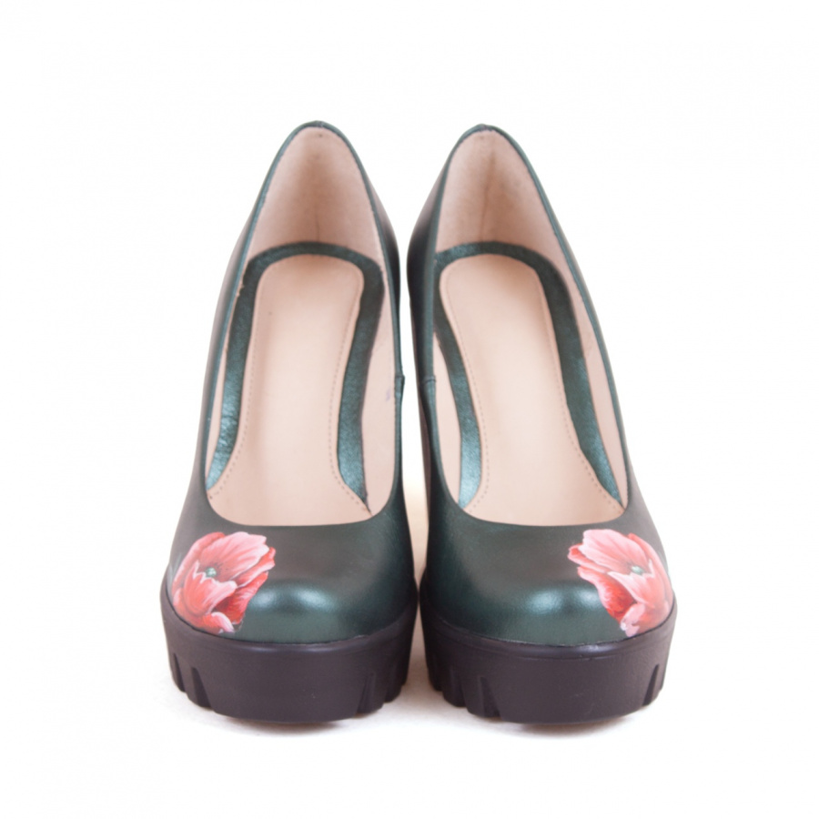 Купить женские туфли на высокой платформе с рисунком "мак" на заказ