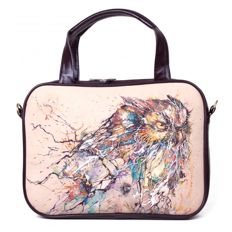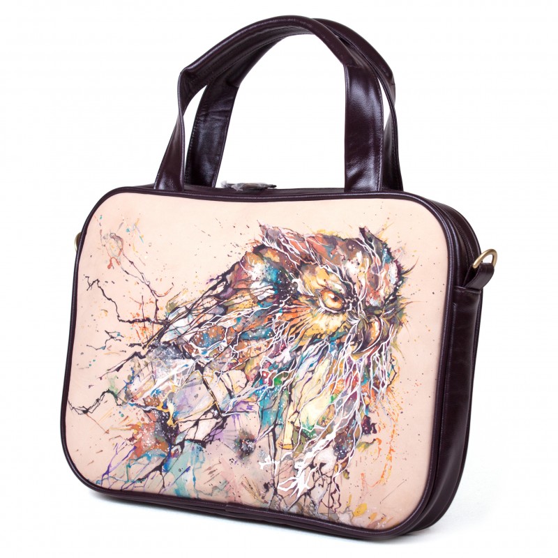 Женская деловая сумка для ноутбука "Филин" с рисунком на заказ - ручная работа