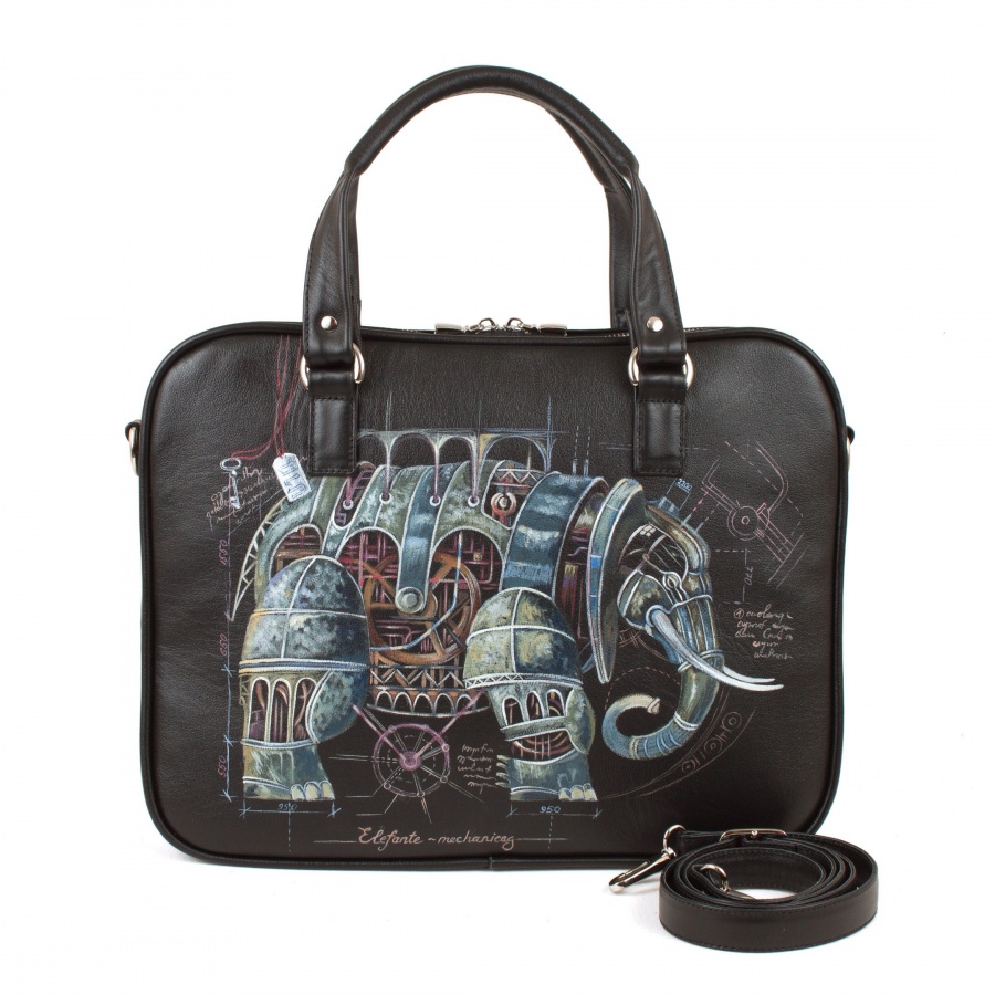 Сумка портфель для ноутбука и документов с рисунком ручной работы "Слон стимпанк"