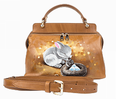Красивая сумка с росписью по коже "Зайка и птенец" на заказ | Купить в Sumnizza
