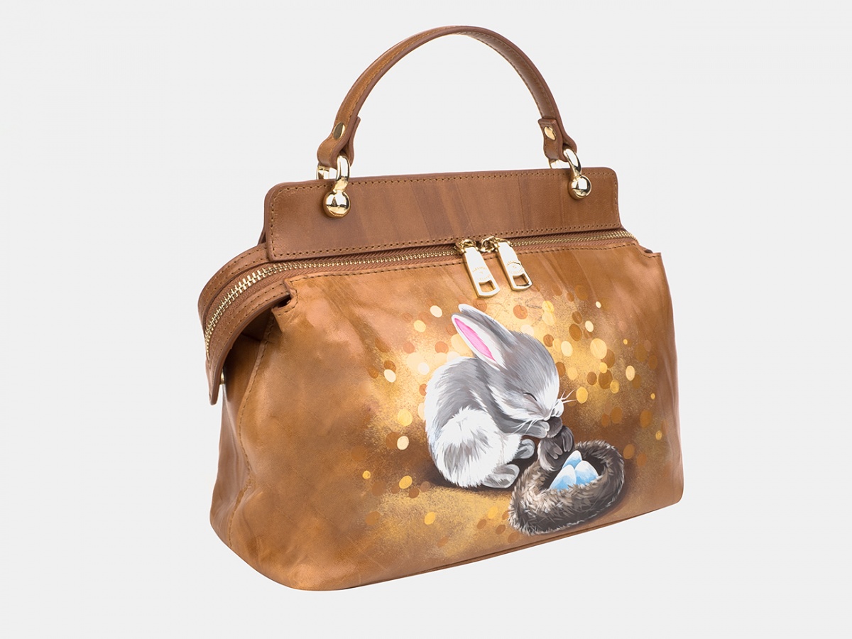 Красивая сумка с росписью по коже "Зайка и птенец"