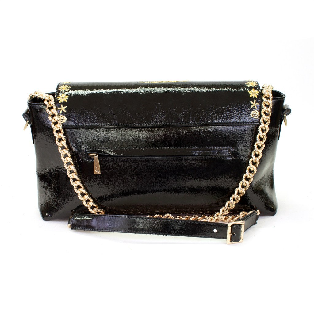 Сумка лакированная женская с вышивкой "Цветочный череп"