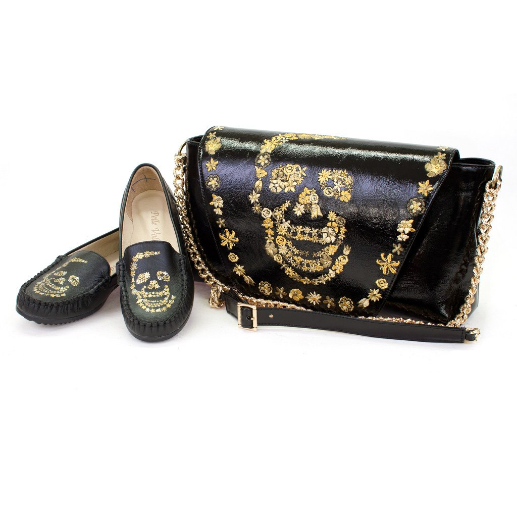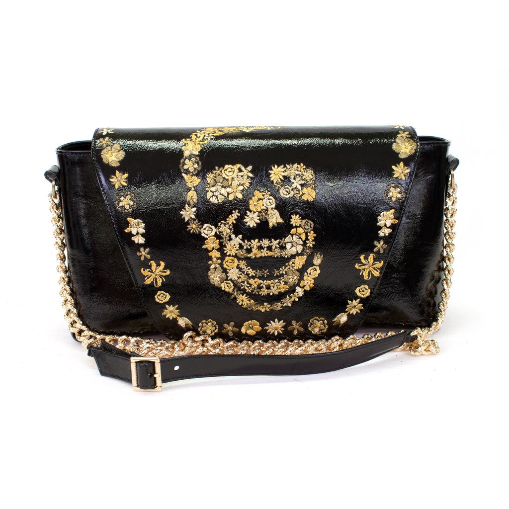 Сумка лакированная женская с вышивкой "Цветочный череп" на заказ | Купить в Sumnizza