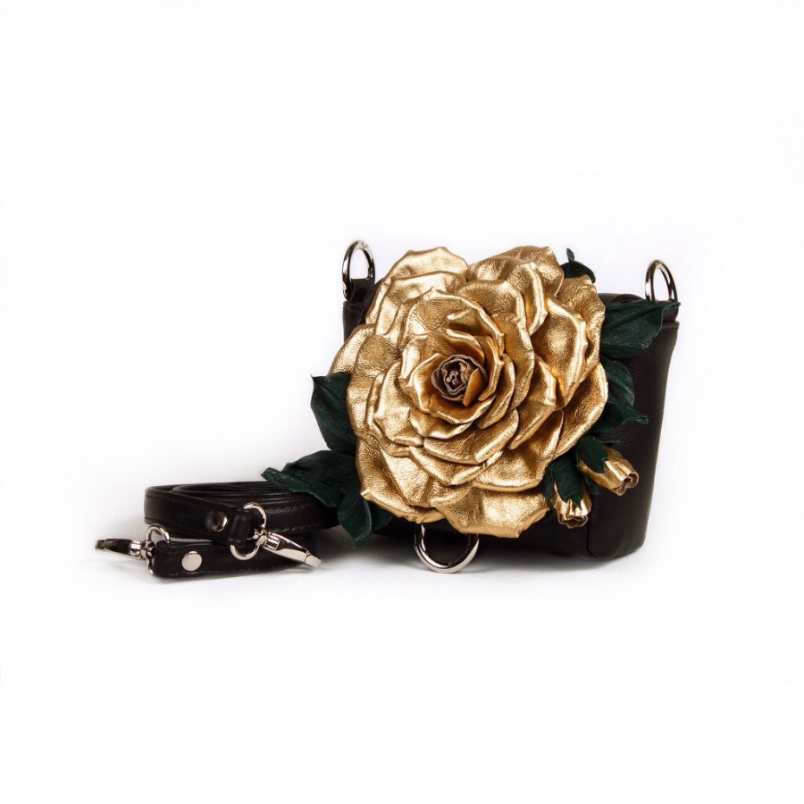 Кожаная сумка клатч с цветочной аппликацией "Золотая роза"