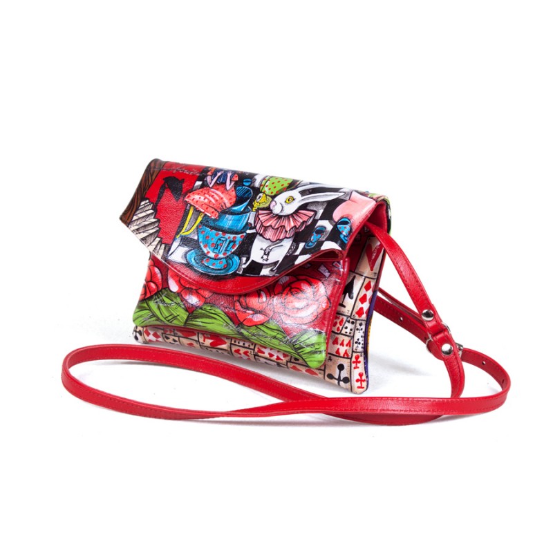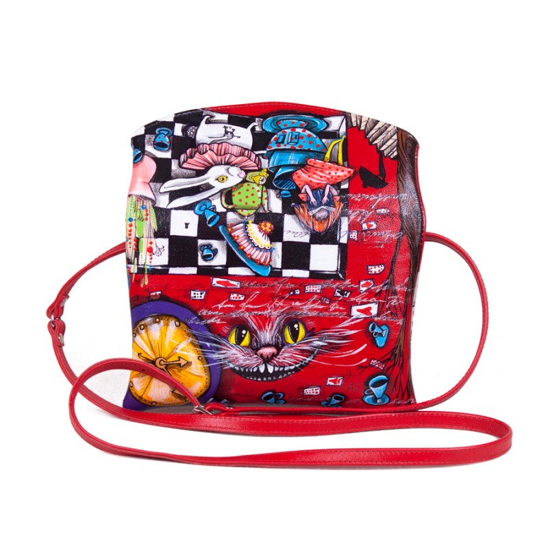 Женская кожаная сумка через плечо с рисунком ручной работы "Этно Алиса" на заказ | Сумка ручной работы