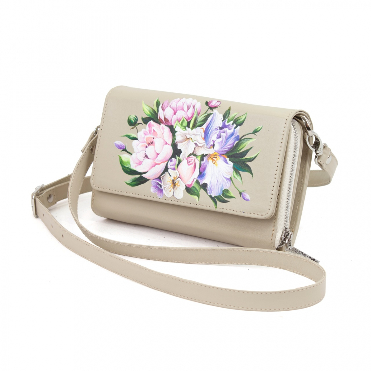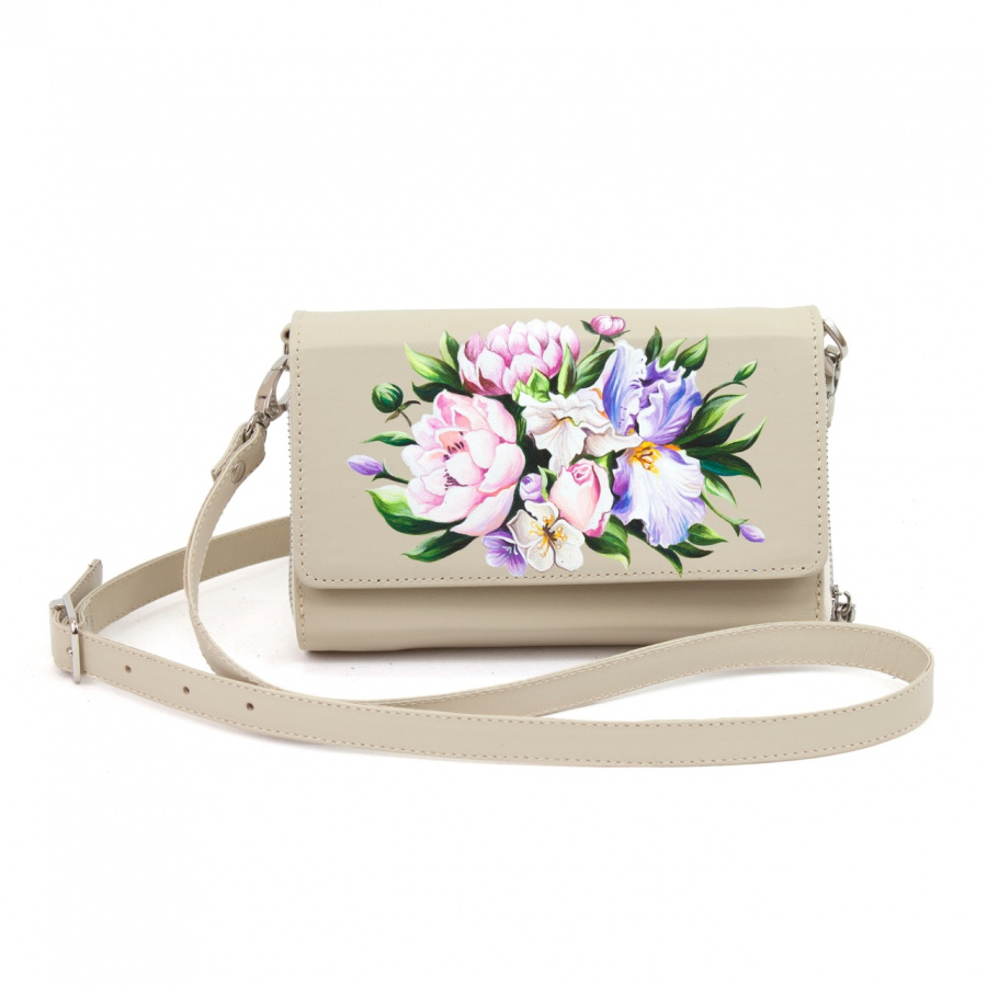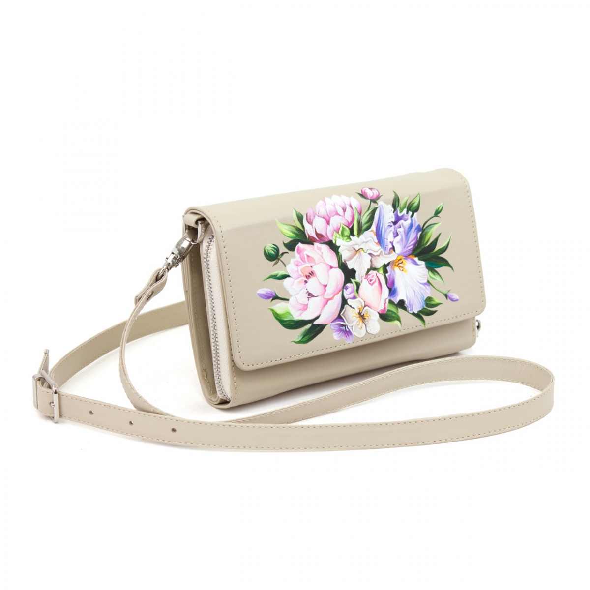 Женская сумка клатч через плечо "Цветочный принт" на заказ - женская кожаная сумка ручной работы с авторским рисунком фото 2