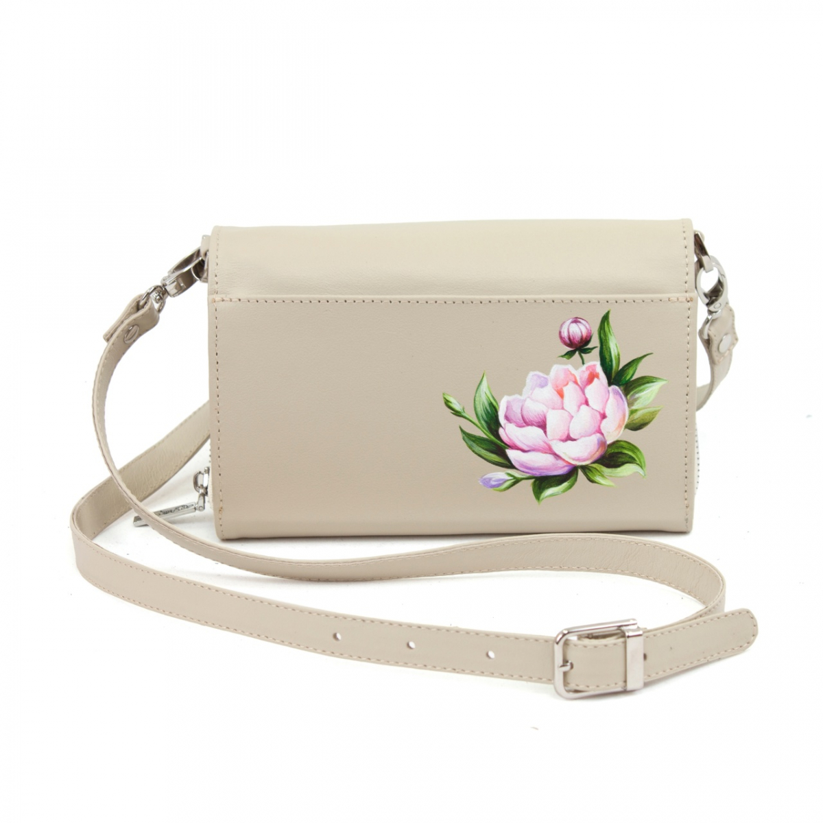 Женская сумка клатч через плечо "Цветочный принт" на заказ - женская кожаная сумка ручной работы с авторским рисунком фото 5