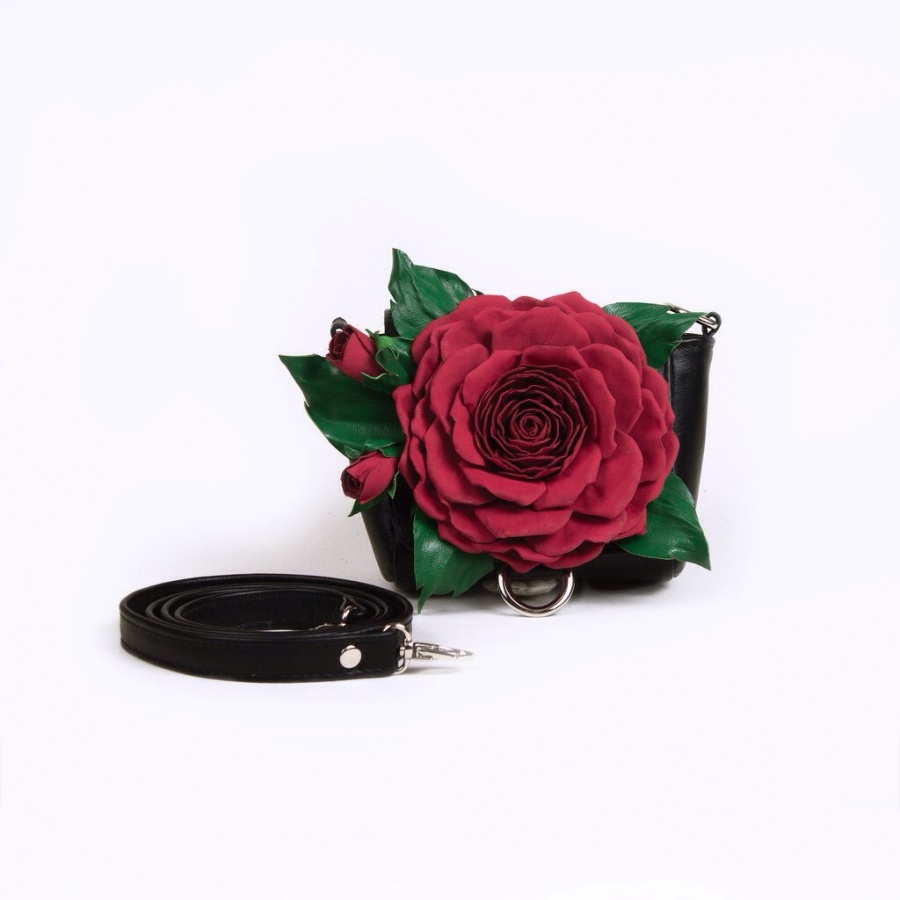 Женская сумка клатч с аппликацией цветка "Роза бордо"