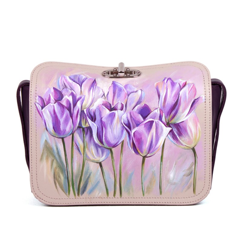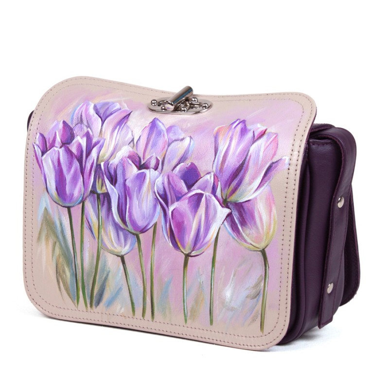 Женская кожаная сумка с рисунком ручной работы "Тюльпаны"
