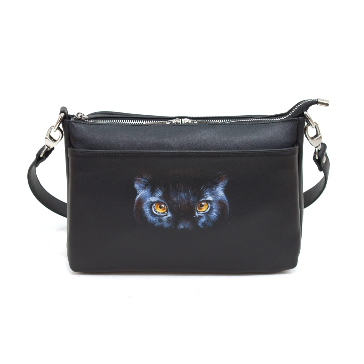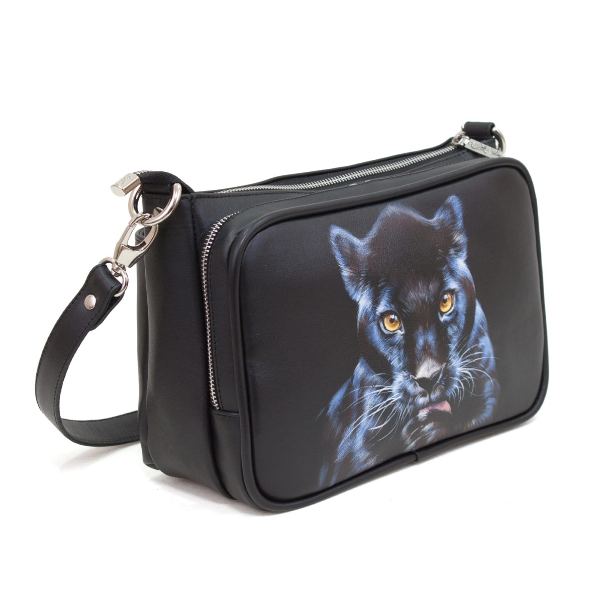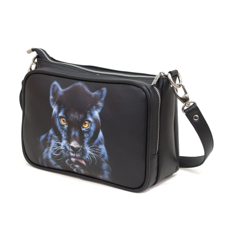 Женская кожаная сумка через плечо с рисунком ручной работы "Пантерка"
