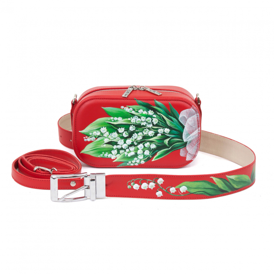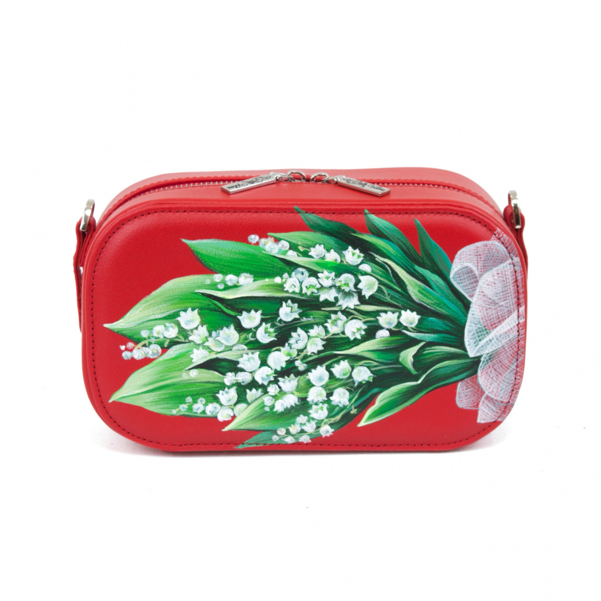 Женская кожаная сумка через плечо с рисунком ручной работы "Ландыши"