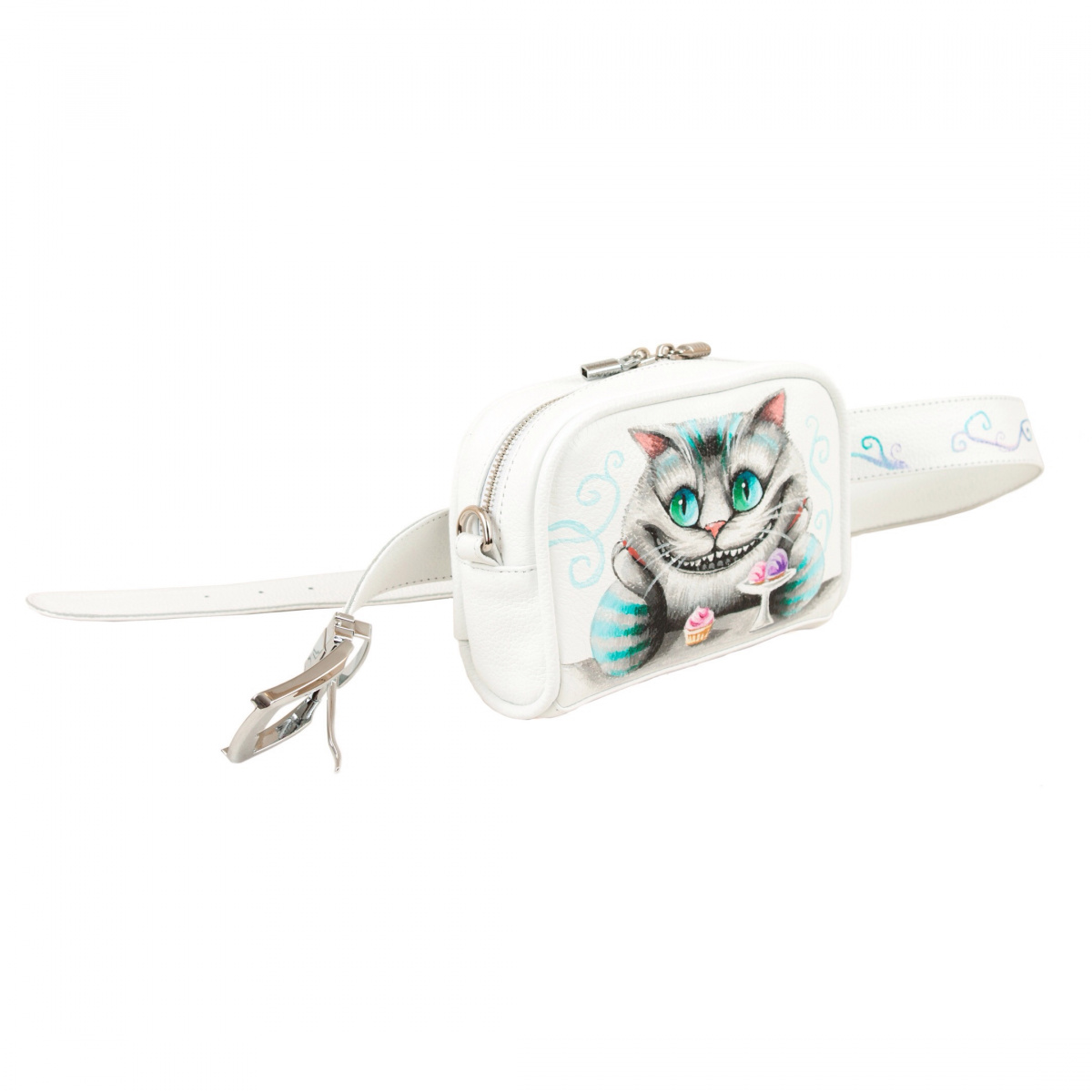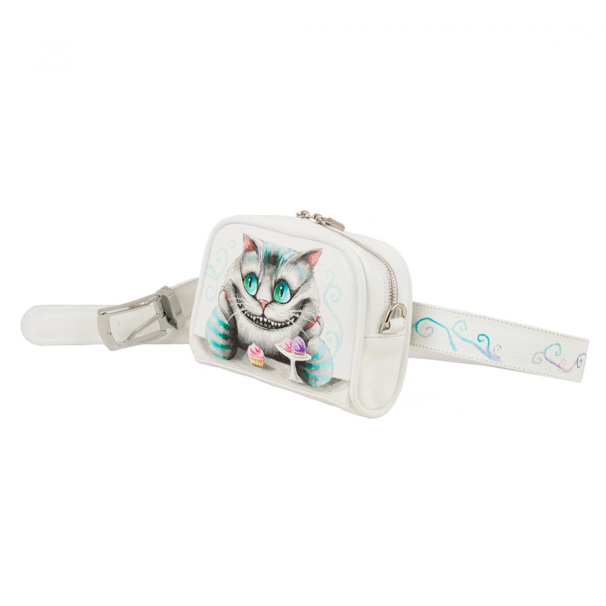Женская кожаная сумка через плечо с рисунком ручной работы "Чешир" на заказ | Купить в Sumnizza