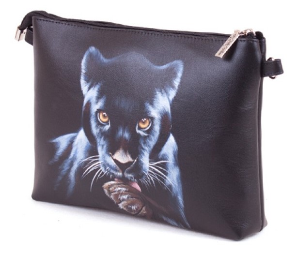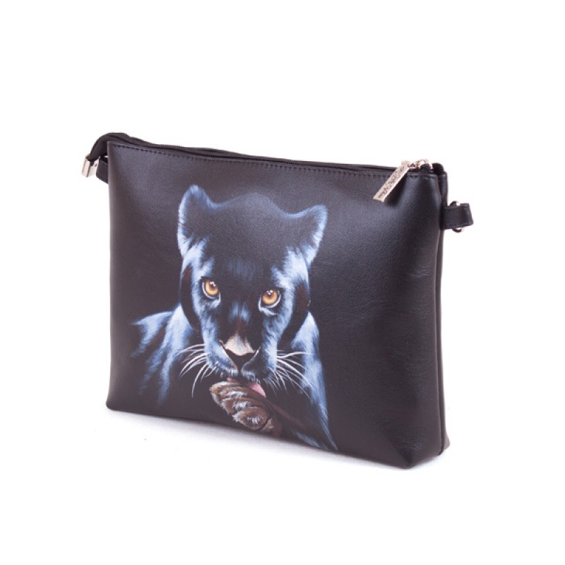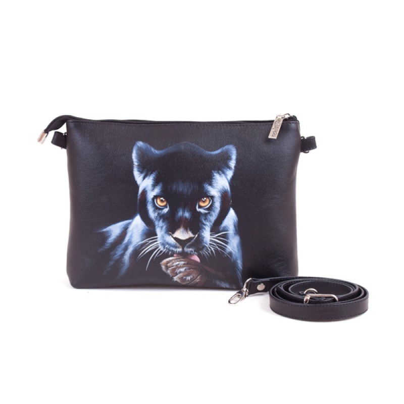 Женская кожаная сумка через плечо с рисунком ручной работы "Черная пантера"