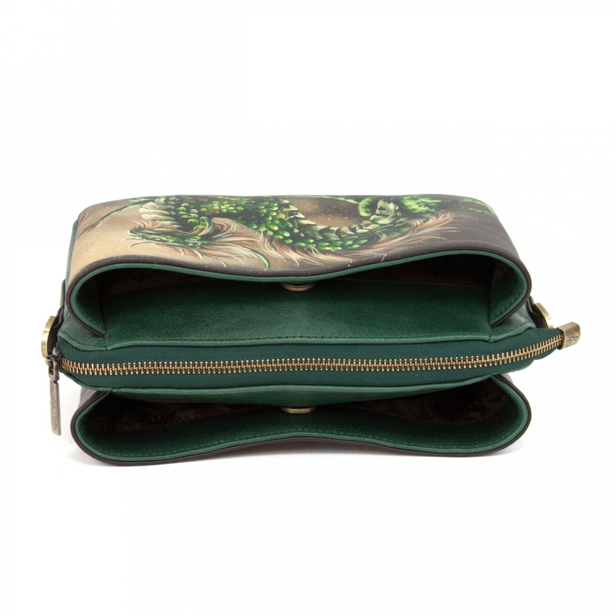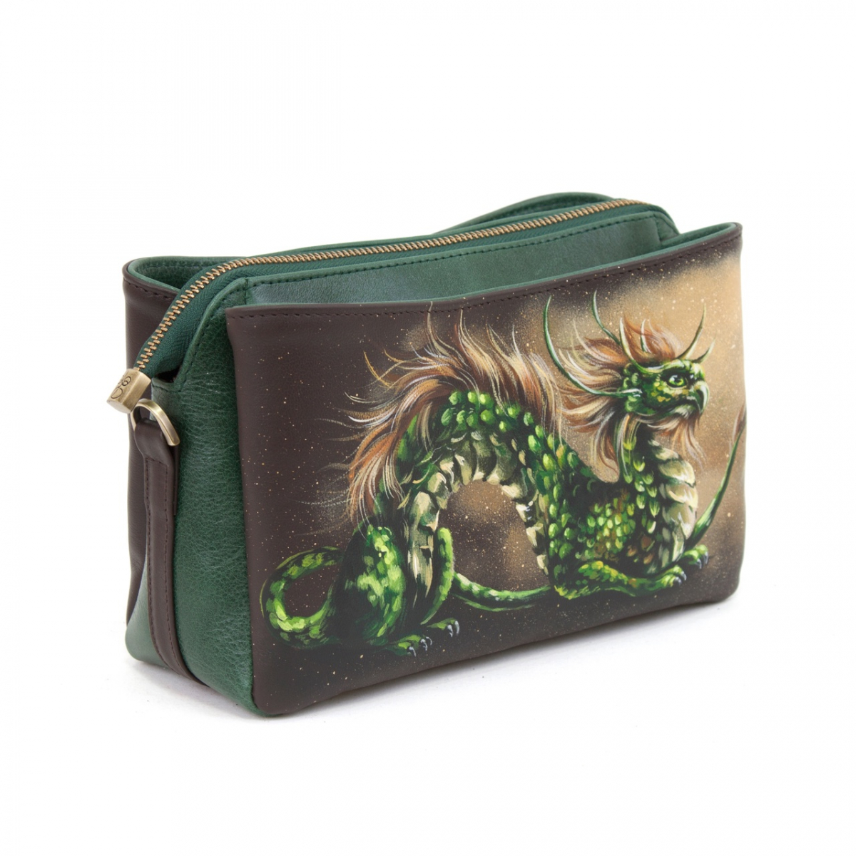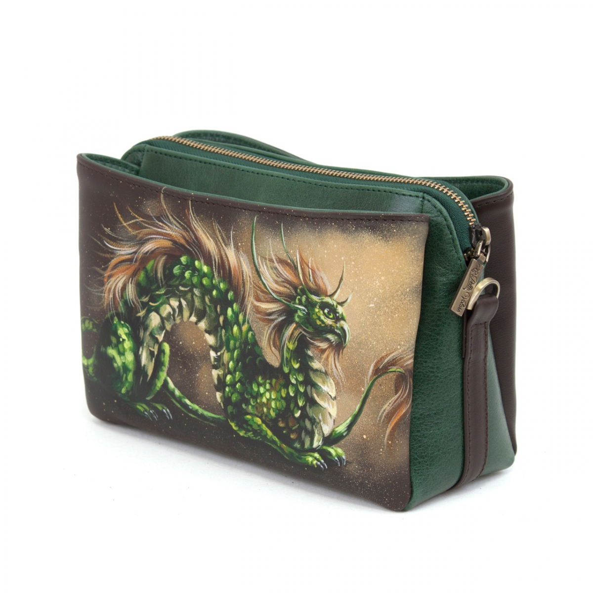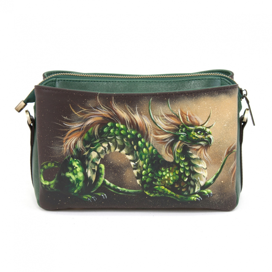Женская кожаная сумка через плечо с рисунком ручной работы "Сказочный дракон"