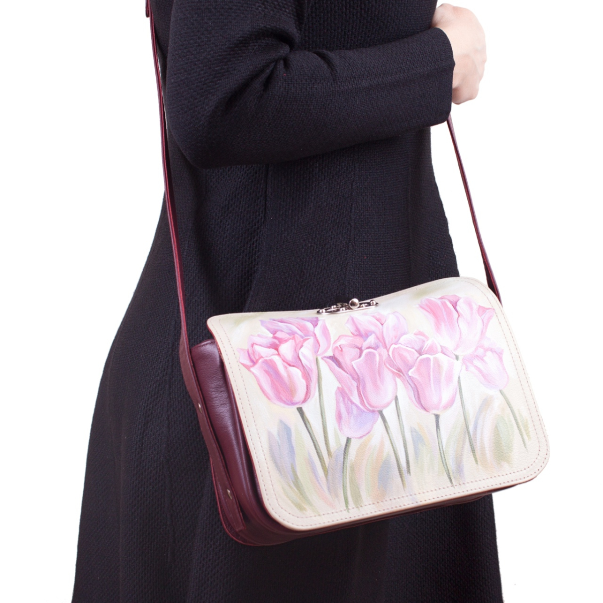 • Стильный рисунок — профессиональные художники расписывают кожаные женские сумки через плечо акриловыми красками, как холст. Каждая роспись уникальна.