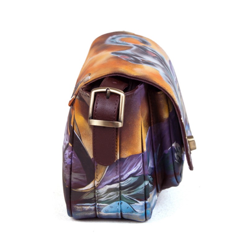 • Стильный рисунок — профессиональные художники расписывают кожаные женские сумки через плечо акриловыми красками, как холст. Каждая роспись уникальна.