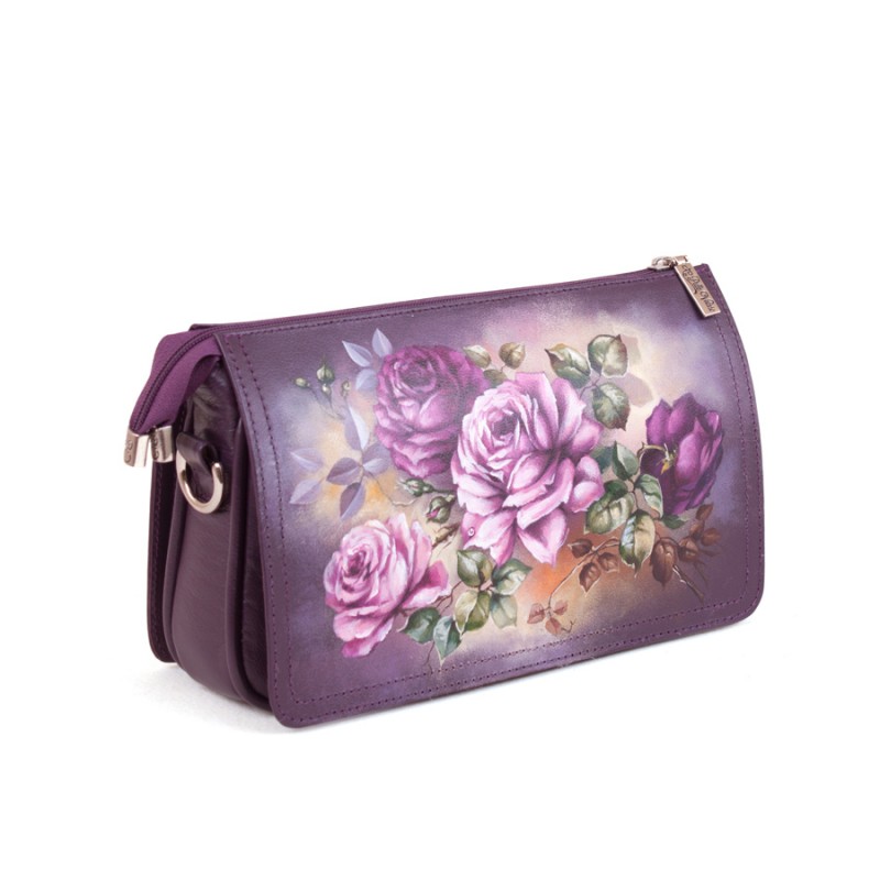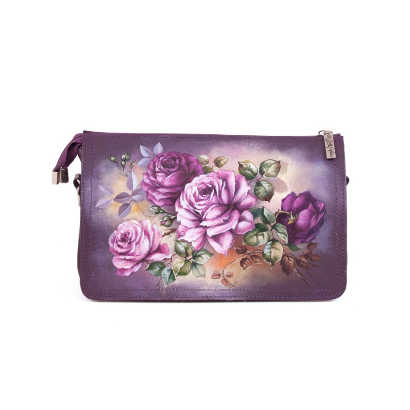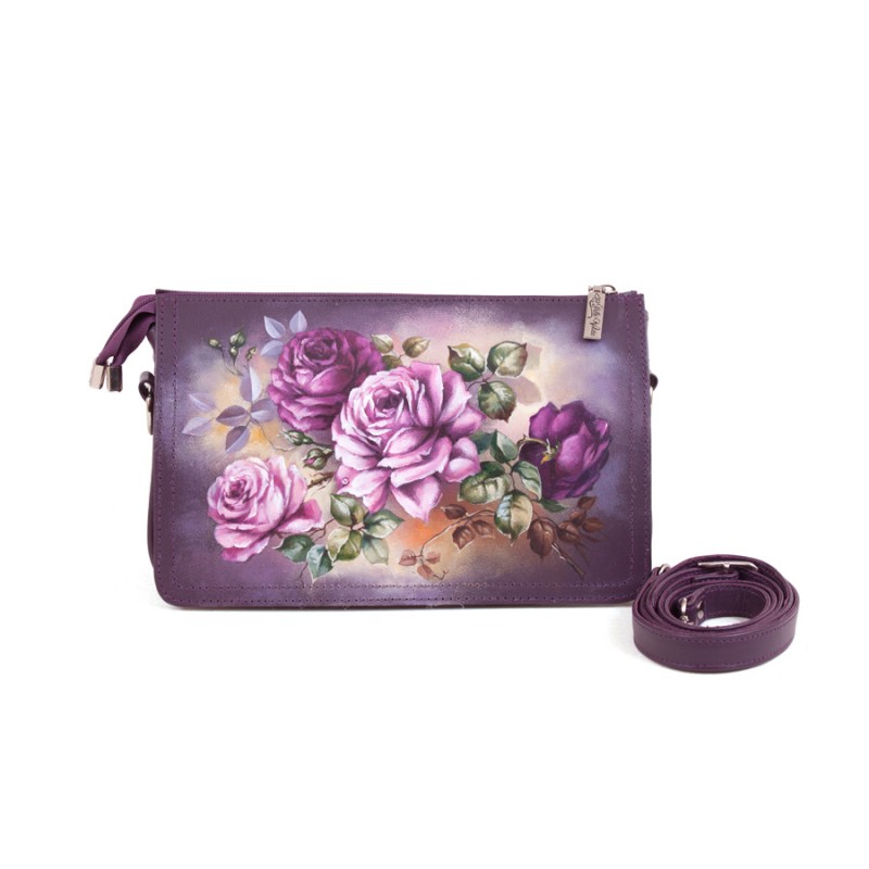 Женская кожаная сумка через плечо с рисунком ручной работы "Букет роз"