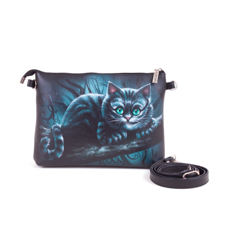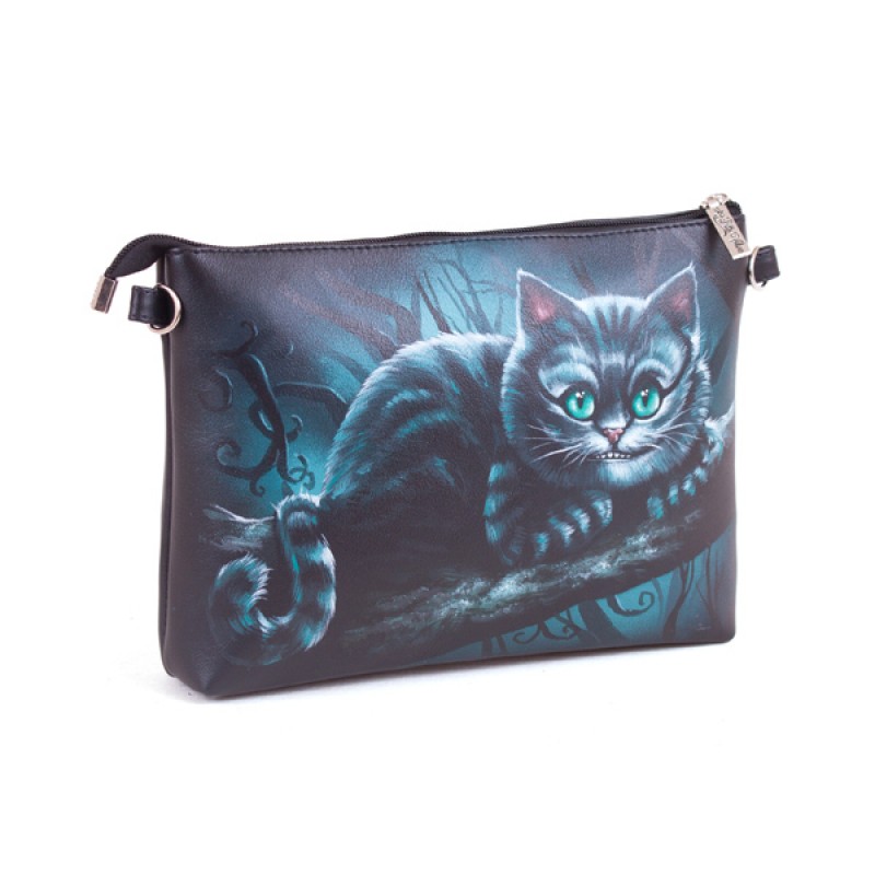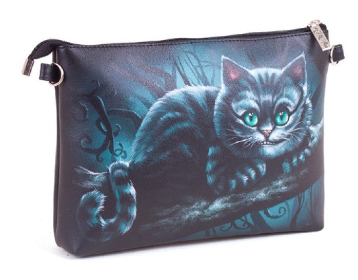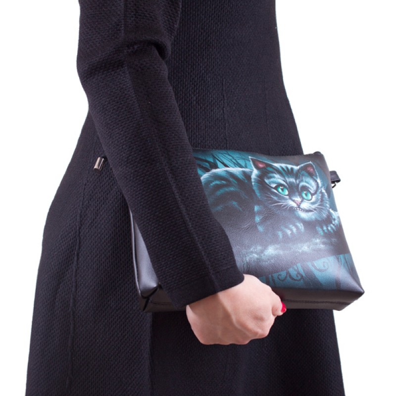 Женская кожаная сумка через плечо с рисунком ручной работы "Чешир на ветке" на заказ | Купить в Sumnizza