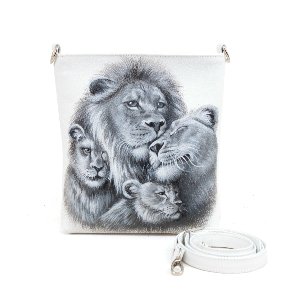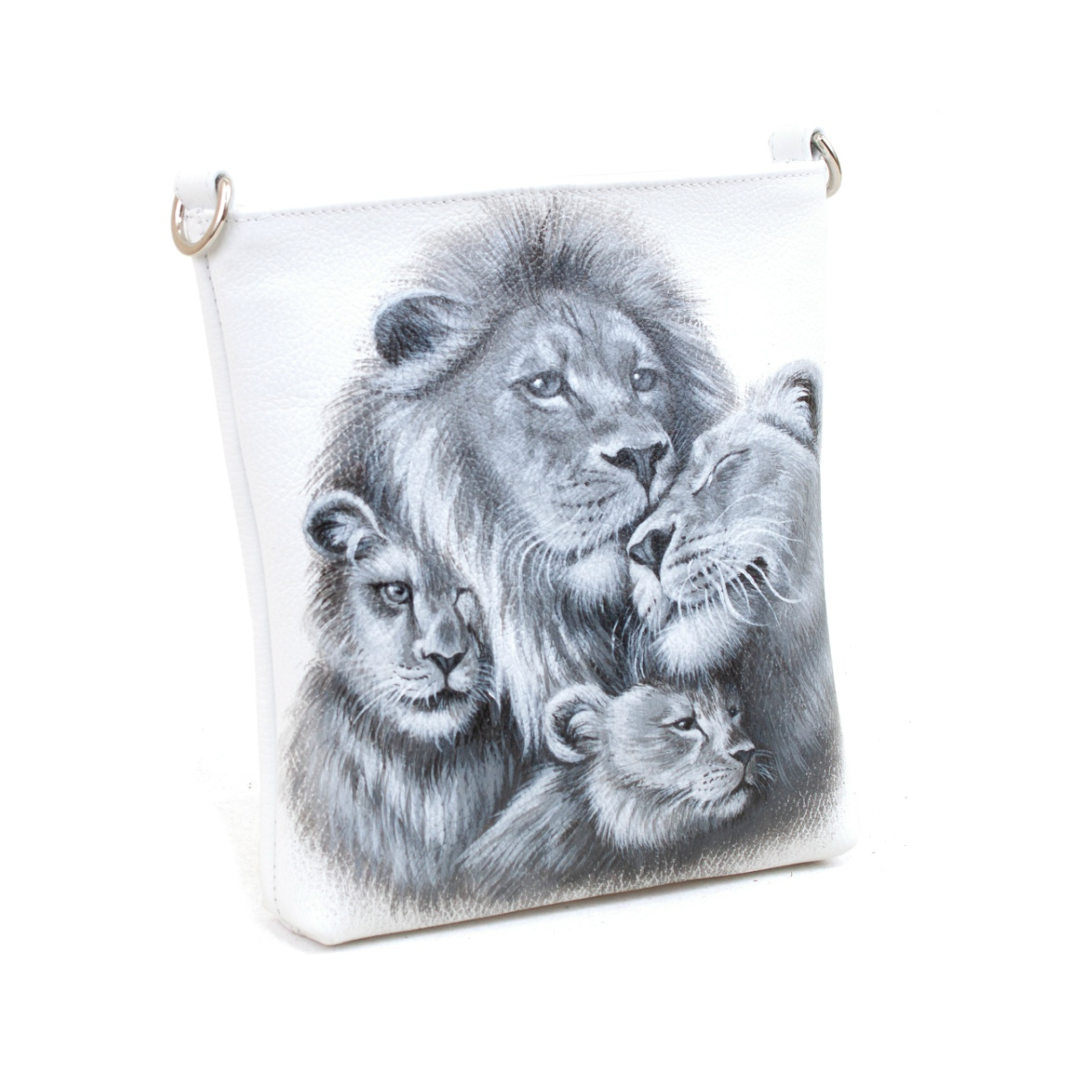 Сумочка с индивидуальным рисунком - это выбор в пользу осмысленного потребления и индивидуальности. Сюжет с семейством львов символизирует силу, мудрость и домашний уют — ценности, близкие каждому. Ручная работа гарантирует, что второго такого аксессуара не существует. Качественная российская фурнитура и надежные швы обеспечивают долговечность, а продуманная форма позволяет носить сумку с комфортом в любое время года.