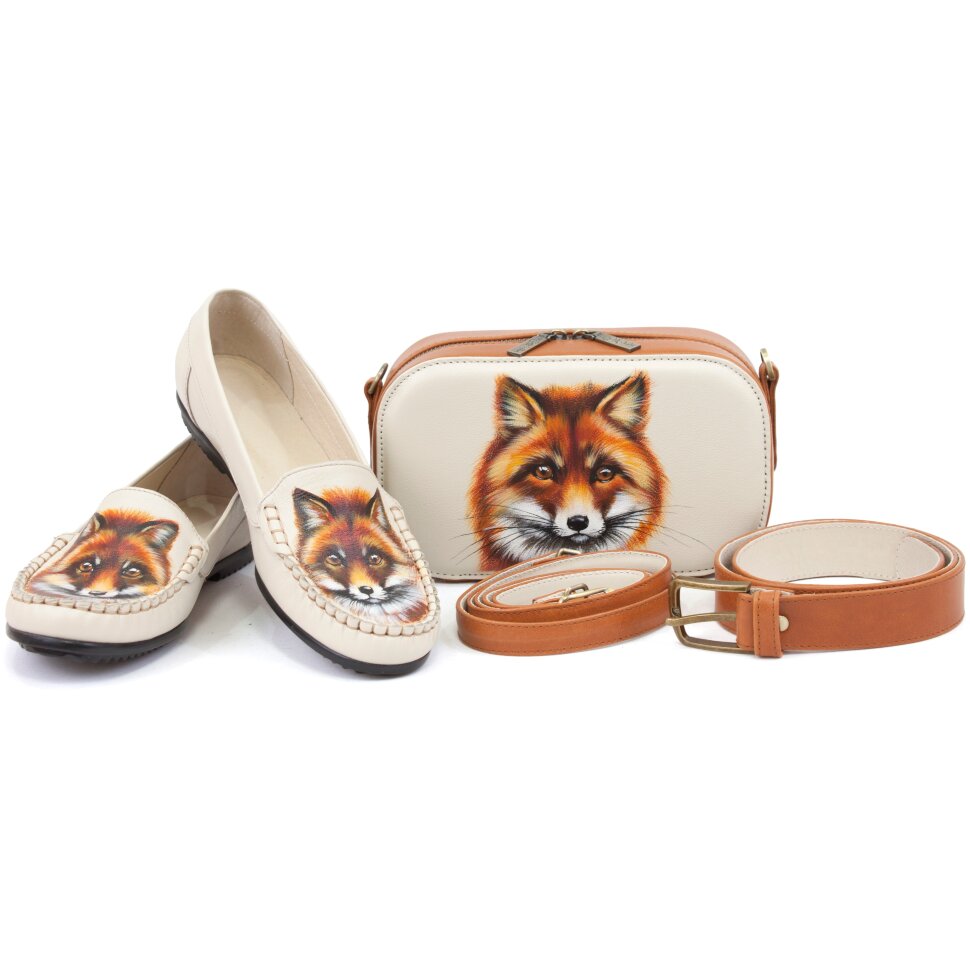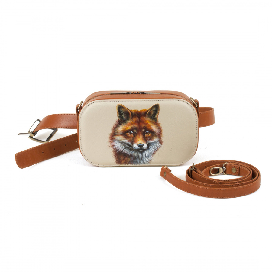 Женская кожаная сумка на плечо, на пояс с росписью "Лисица" — кросс боди с принтом на заказ фото 4