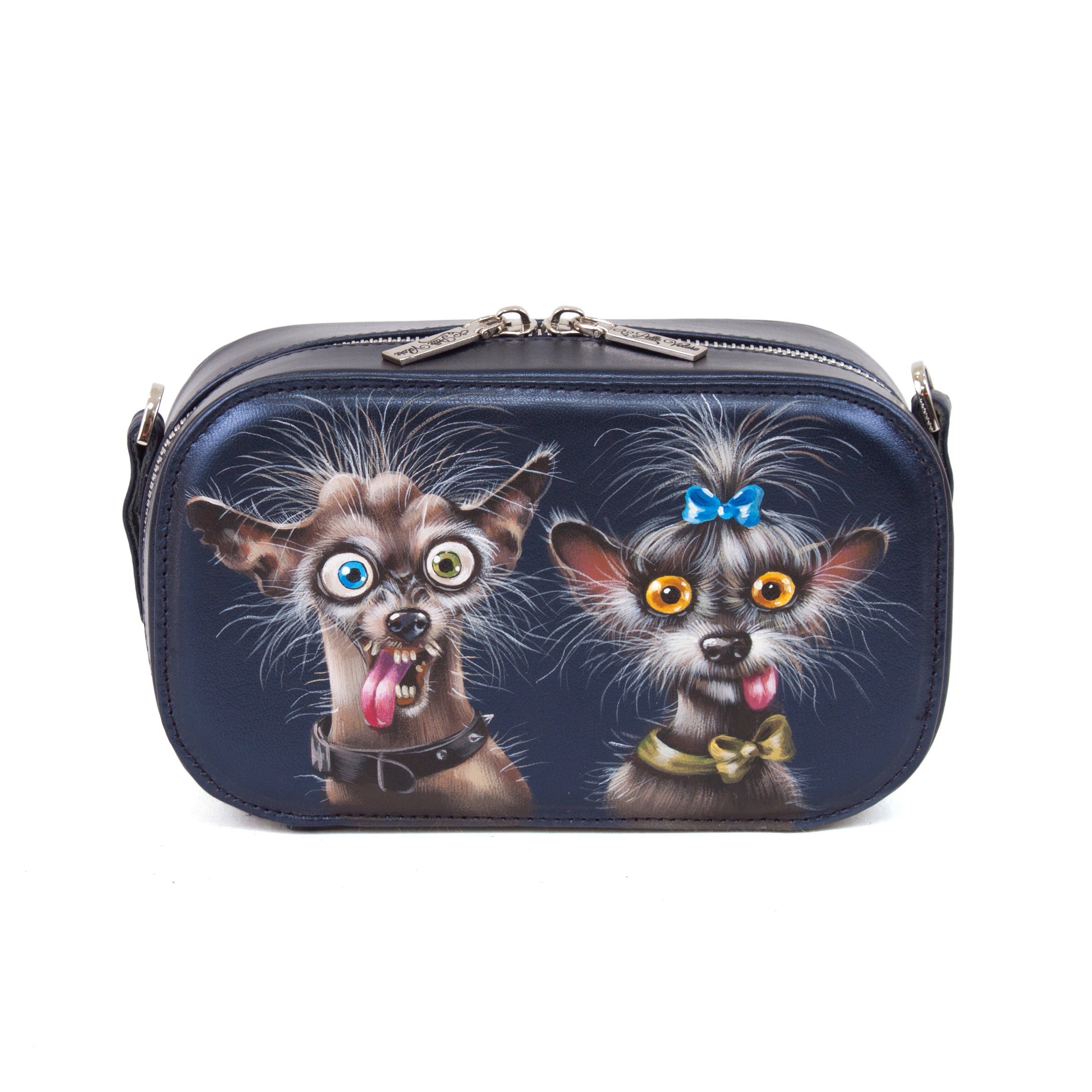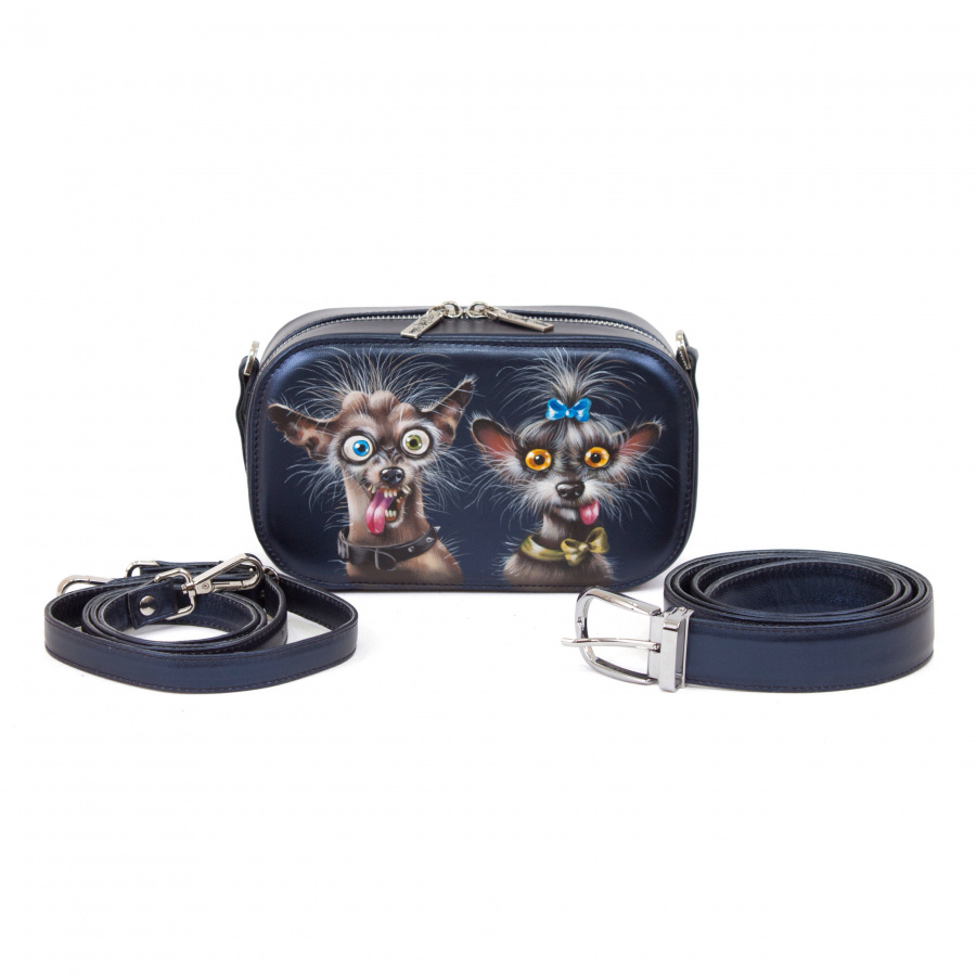 Женская кожаная сумка через плечо с рисунком ручной работы "Злые собачки" — кросс боди с принтом на заказ