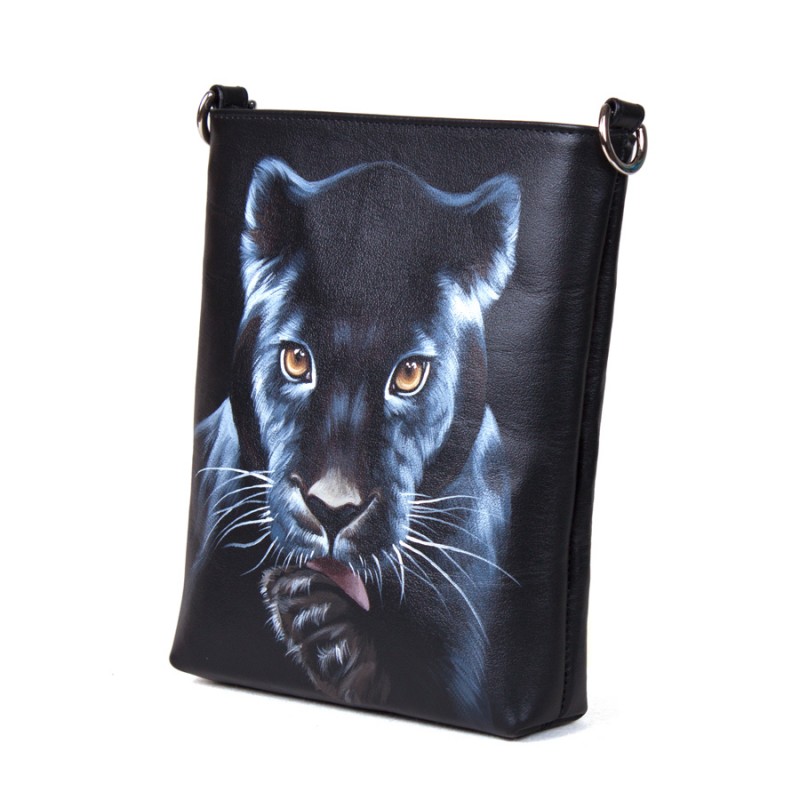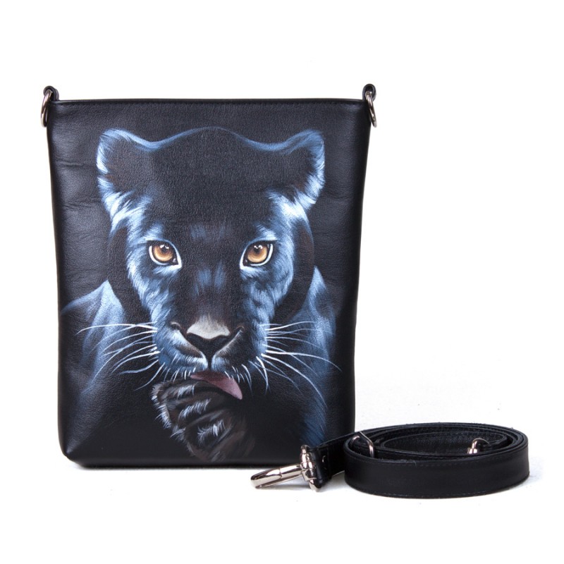 Женская кожаная сумка через плечо с рисунком ручной работы "Черная пантера" — кросс боди с принтом на заказ