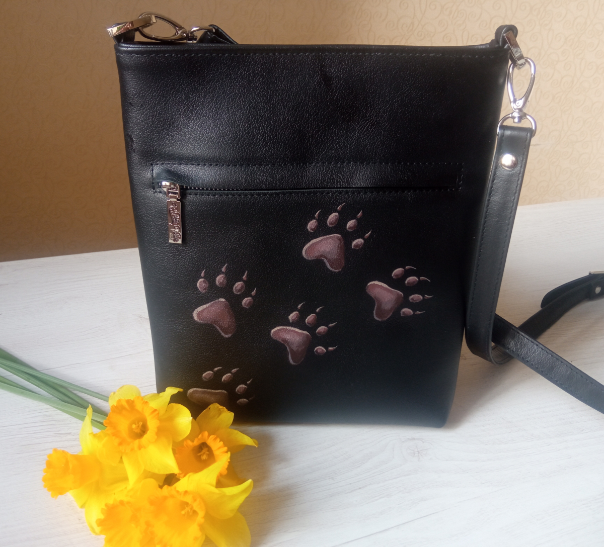 Женская кожаная сумка через плечо с рисунком ручной работы "Черная пантера" — кросс боди с принтом на заказ фото 7