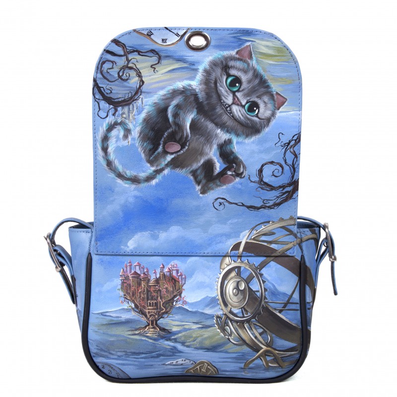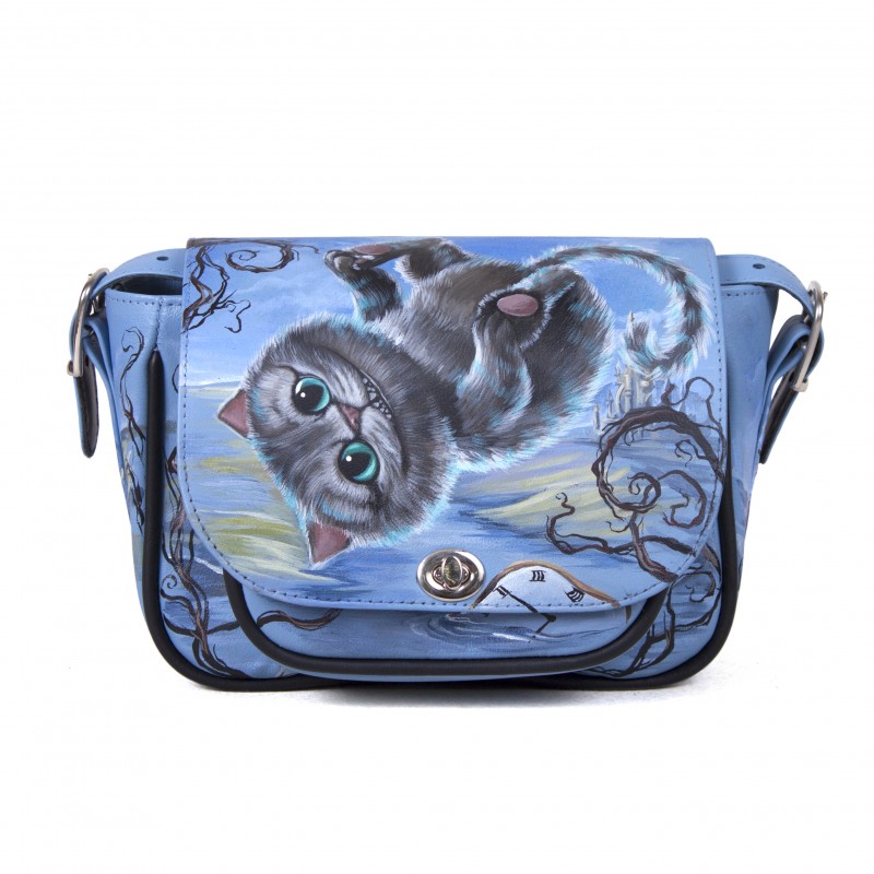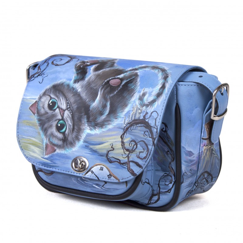 Женская кожаная сумка через плечо с рисунком ручной работы "Чешир"