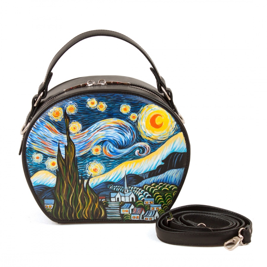 Сумка полукруг через плечо с росписью "Ван Гог Звёздная ночь" ручной работы на заказ