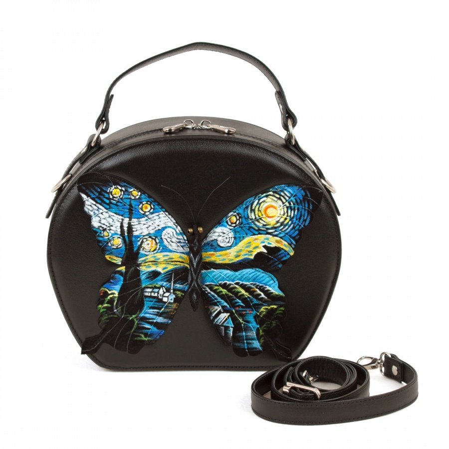 Полукруглая женская сумка с росписью "Ван Гог Звездная ночь" ручной работы на заказ