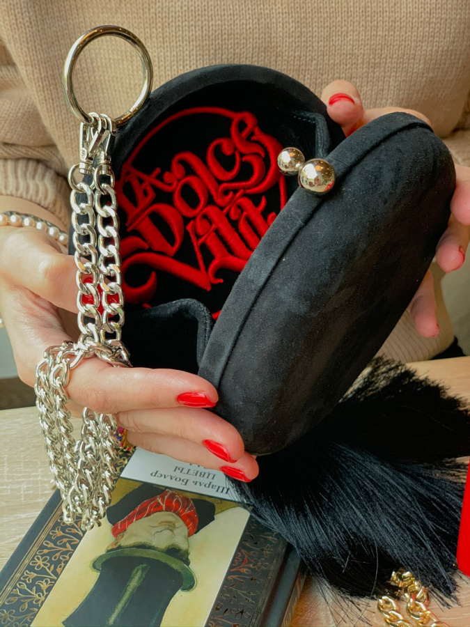 Замшевый вечерний клатч минодьер с вышивкой "Dolce vita" ручной работы на заказ