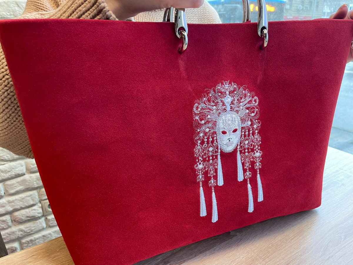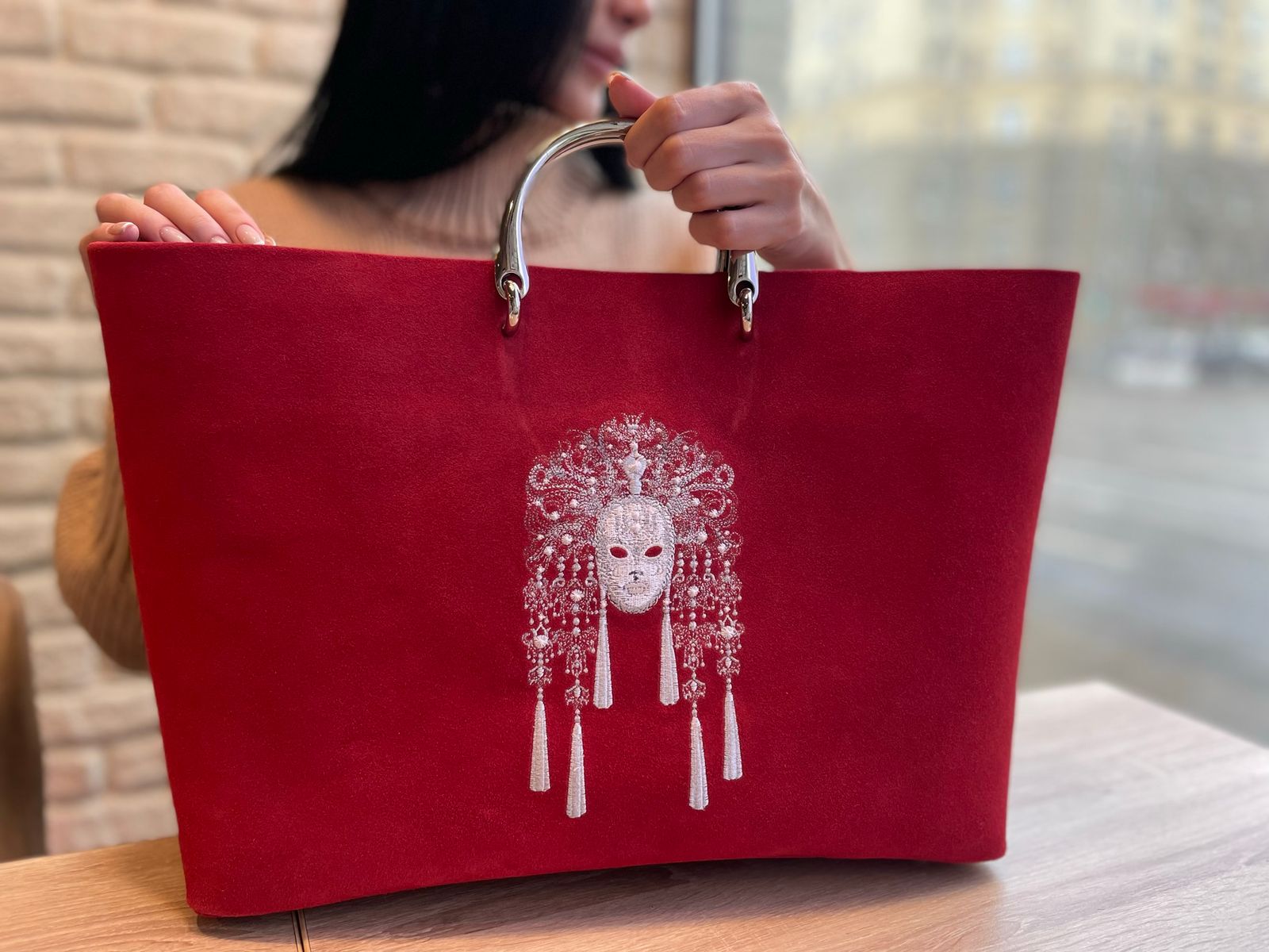 Мы создадим замшевую женскую сумку шоппер специально для вас. Ваша вышивка ручной работы сделает ее единственной и неповторимой.