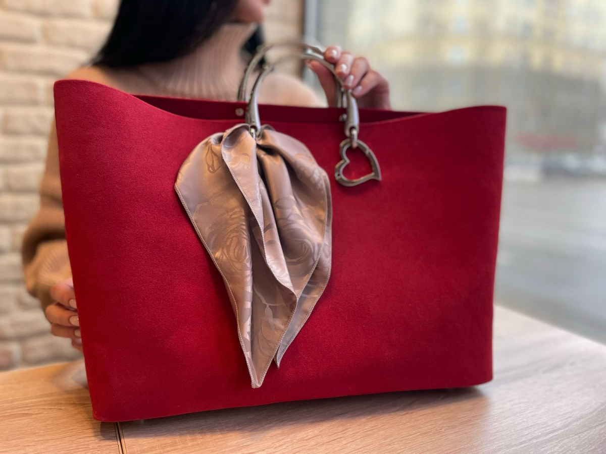 • Купить замшевую женскую сумку шоппер с индивидуальным дизайном, созданную вручную — значит стать обладательницей аксессуара, которого нет больше ни у кого.
