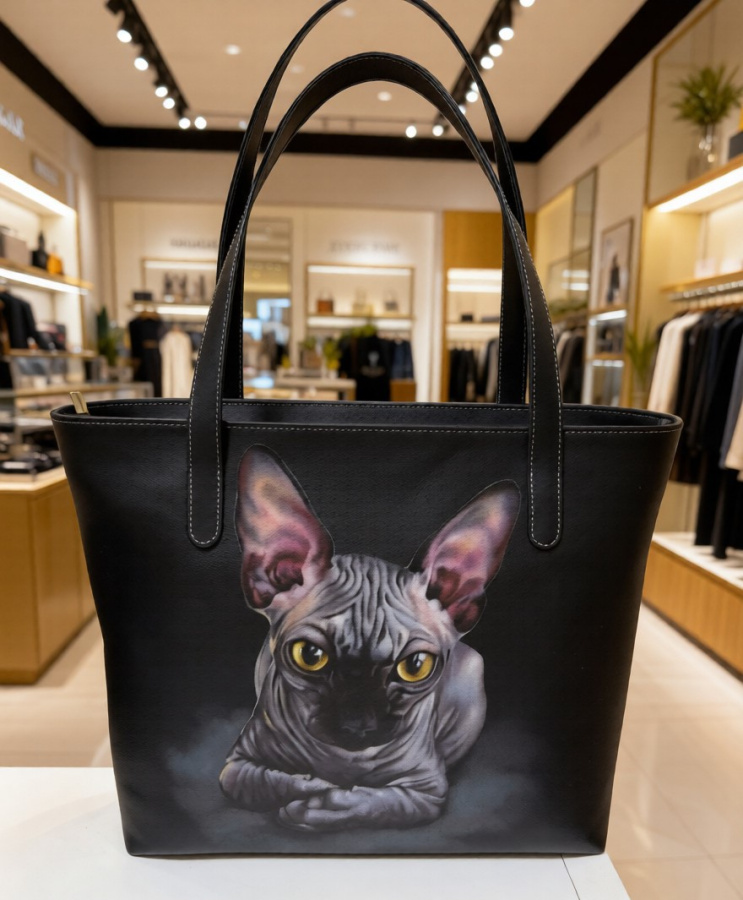 Эксклюзивную модель — черный кожаный шоппер оригинальной формы трапеция. Авторский портрет Сфинкса нанесен вручную стойкими акриловыми красками и покрыт защитным лаком. Роспись на долгие годы сохранит первозданный вид, что делает этот аксессуар по-настоящему уникальным. Мы используем только натуральную кожу высшего качества.