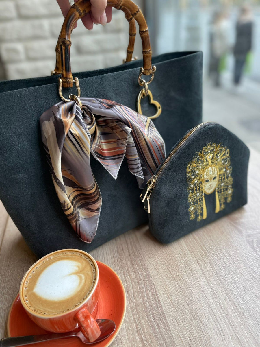 Мы создадим замшевую женскую сумку шоппер специально для вас. Ваша вышивка ручной работы сделает ее единственной и неповторимой.