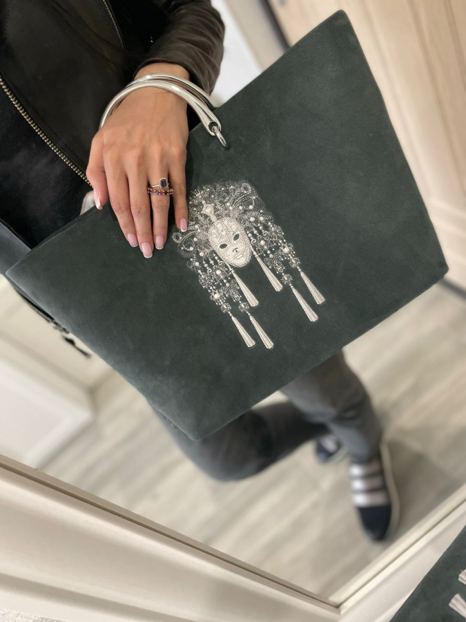 Мы создадим замшевую женскую сумку шоппер специально для вас. Ваша вышивка ручной работы сделает ее единственной и неповторимой.