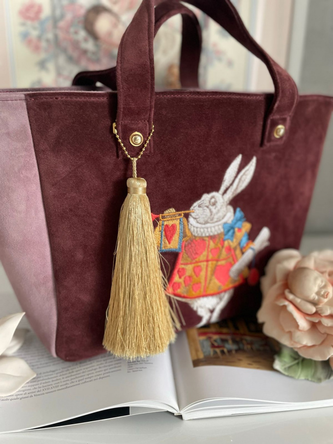 Замшевый шоппер с 3-D вышивкой "Белый Кролик"