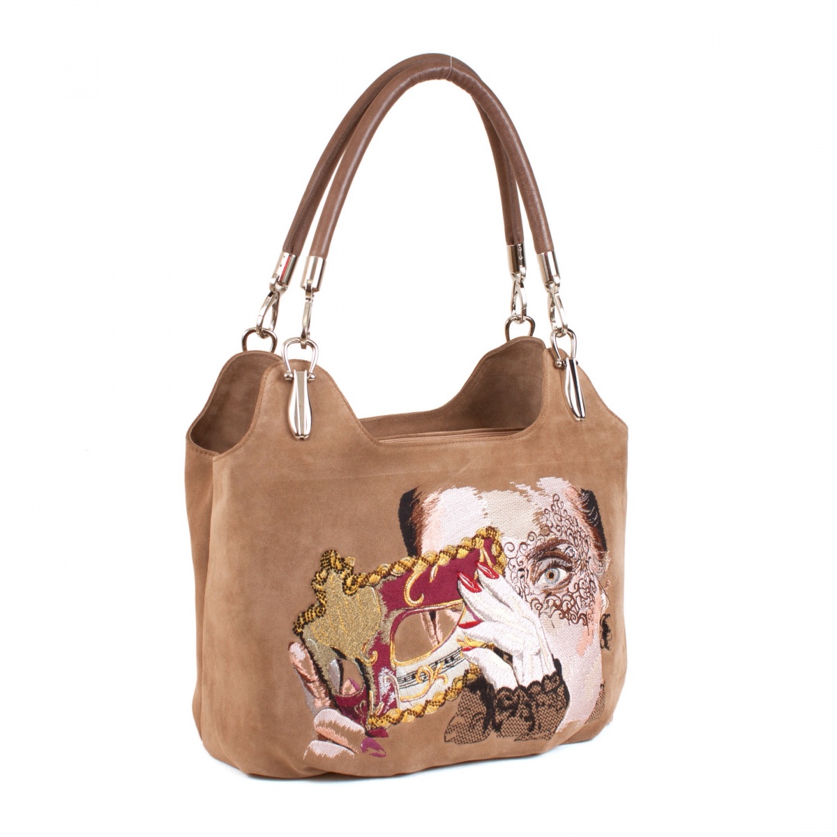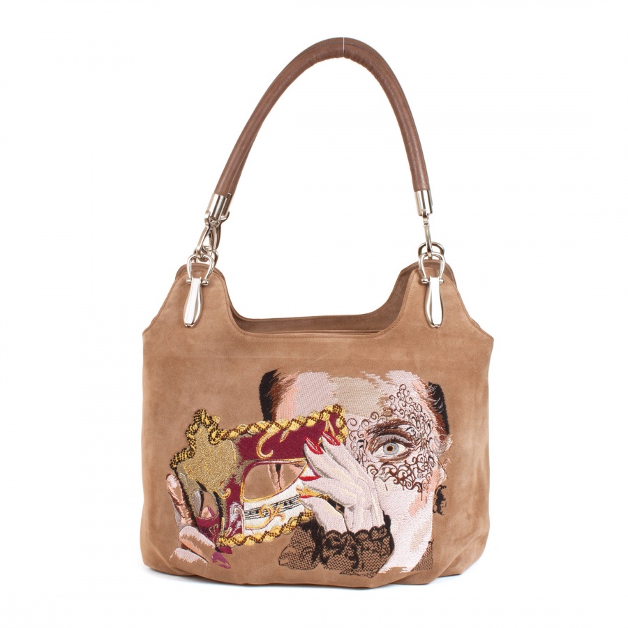 Мы создадим замшевую женскую сумку хобо специально для вас. Ваша объемная вышивка сделает ее единственной и неповторимой.